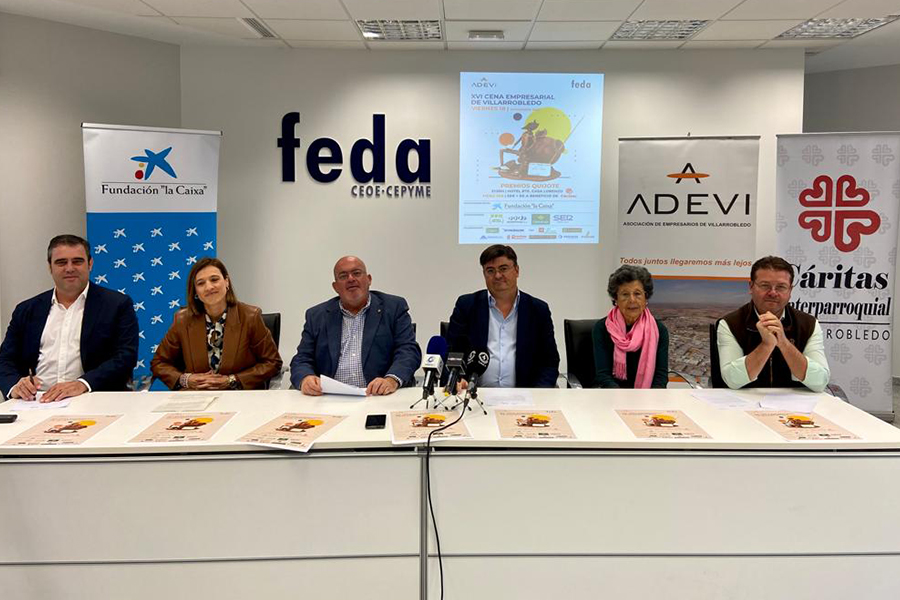 La Delegación de FEDA en Villarrobledo, junto con Adevi, han dado a conocer los Premios Quijote que entregarán en el marco de la cena empresarial que celebrarán este viernes, día 18 de noviembre, a las 21,30 horas, en el hotel restaurante Casa Lorenzo.