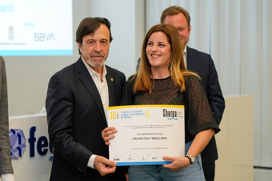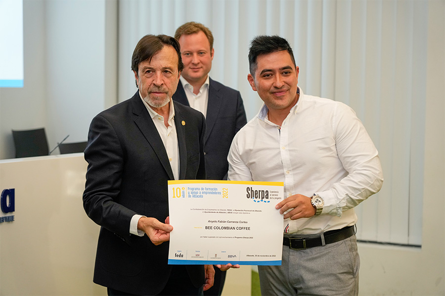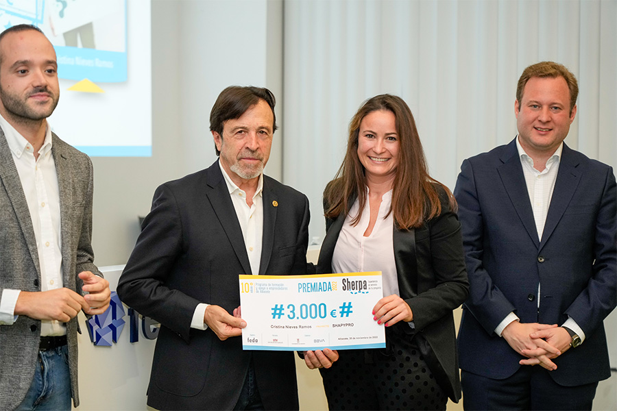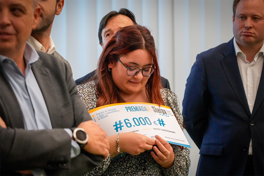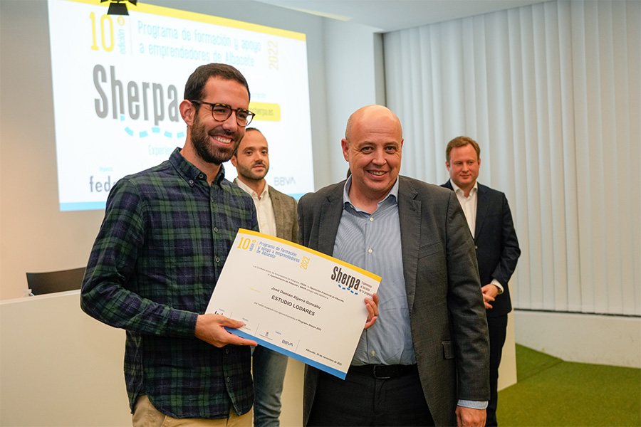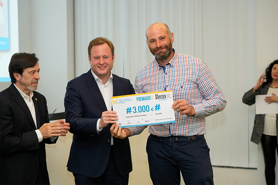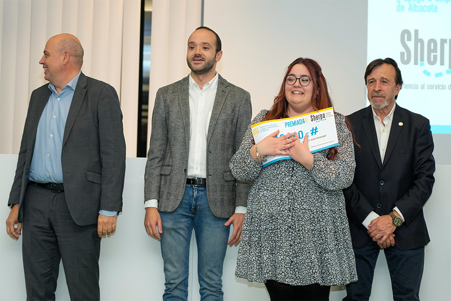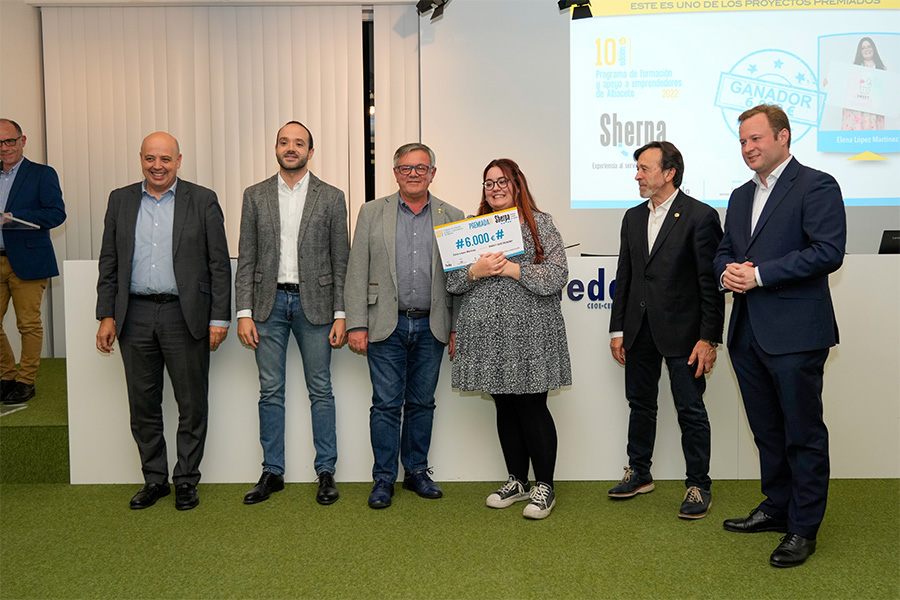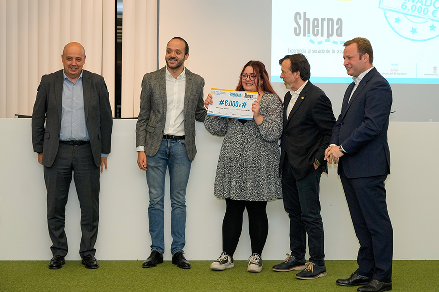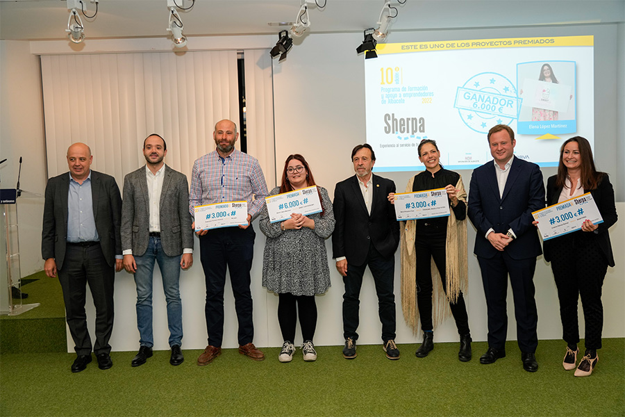 En el acto de clausura del Programa Sherpa también se entregaron otros tres premios de 3.000 euros cada uno. Cristina Nieves Ramos, con su proyecto ‘Shapypro’ (Albacete) dedicado a la prestación de servicios de consultoría en calidad y auditorías en los sectores farmacéutico, cosmético, veterinario, laboratorios biotecnológicos y productos sanitarios, y Francisco Tornero Tornero, con su proyecto ‘Villapi’ (Villarrobledo) de mejora genética y cría de abejas reinas de raza ibérica para mejorar la resistencia de enfermedades y sus producciones de miel. Por su parte, Marta Requena Pozo fue la ganadora de la votación popular, así que también recibió premio su proyecto ‘Grändma, Modelitos Fetén’ (Albacete), una marca de moda que pretende ofrecer piezas vintage impregnadas de elegancia, arte, historia y sensibilidad.