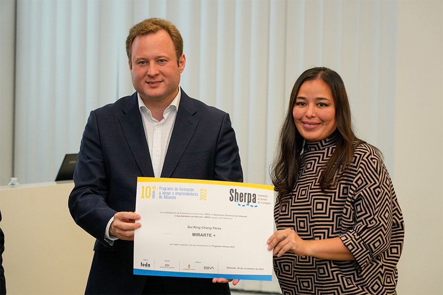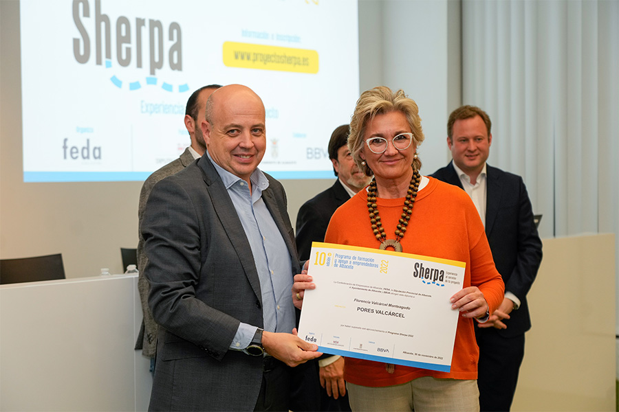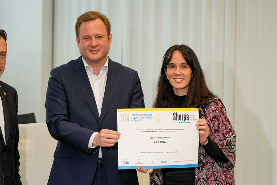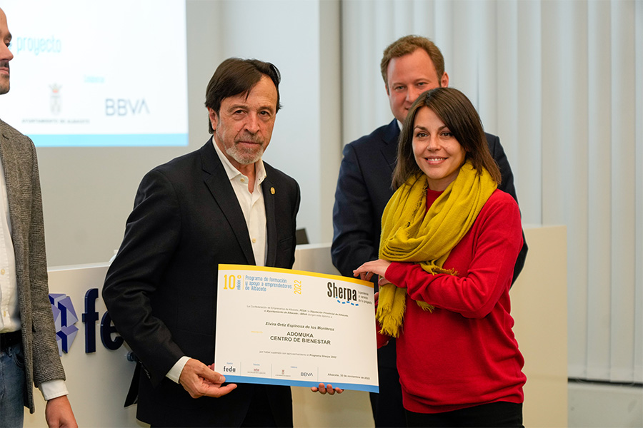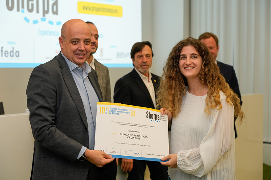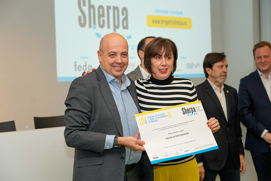 Elena López Martínez, con su proyecto ‘Sweet Gastronomy’ (Hellín), fue la ganadora de la décima edición del Programa Sherpa de apoyo a emprendedores liderado por la Confederación de Empresarios de Albacete, FEDA, con la colaboración de la Diputación Provincial, el Ayuntamiento de Albacete y BBVA. Se llevó un premio de 6.000 euros, más otros 6.500 euros adicionales aportados por el Ayuntamiento de Hellín, debido a que se trata de un proyecto ubicado en dicha ciudad. ‘Sweet Gastronomy’ es una pastelería creativa en la que recrean momentos en tartas completamente personalizadas, con servicio de cafetería en la que ofrecen productos caseros, un amplio surtido de tostadas, cafés, tés y zumos ecológicos.