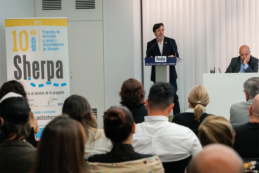 Artemio Pérez finalizó su intervención tendiendo la mano a los 25 emprendedores que han participado en esta décima edición del Programa Sherpa: “Como presidente de FEDA os puedo decir que os queremos entre nosotros como nuevos empresarios y empresarias. Por tanto, a los que queréis empezar en el mundo de la empresa, contad con el apoyo de FEDA”.