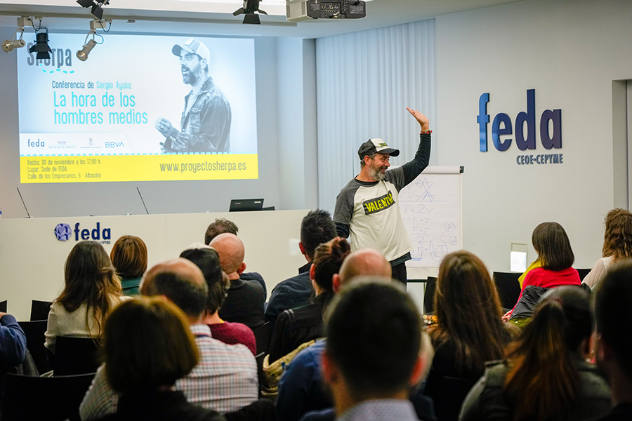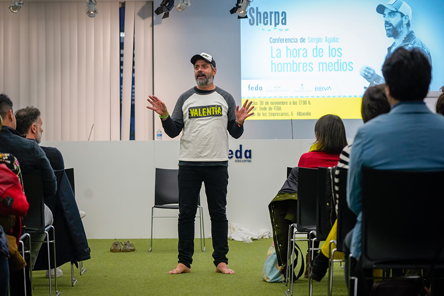 La primera parte del evento final de la décima edición del Programa Sherpa contó con la conferencia ‘La hora de los hombres medios’, impartida por Sergio Ayala. Con una gran dosis de humor, señaló los tres aspectos básicos para el éxito: diferenciación, valentía y resiliencia.