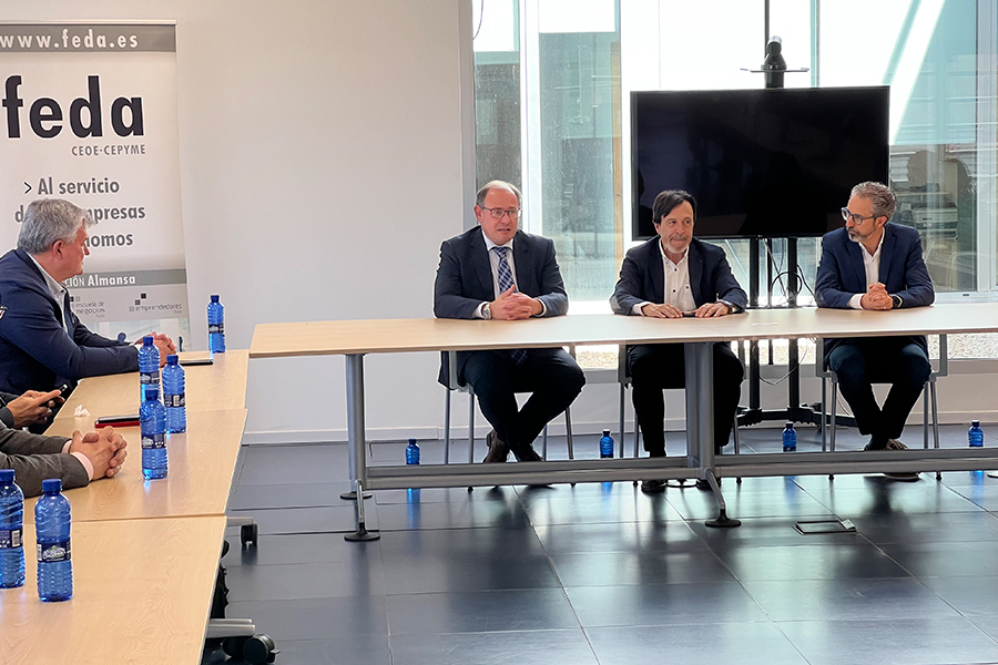 En el transcurso de esta reunión se puso en valor el acuerdo de colaboración y coordinación de FEDA con la Asociación de Fabricantes de Calzado y Afines de Almansa, ASPROFA, que preside Sebastián Blanco Bonete; y acentuando los sectores, se anunció que este año, FEDA con la Asociación de Empresarios de Vinos, celebrará la XII Edición de Mejor con Vino, con el patrocinio de Eurocaja Rural, en Almansa, en el próximo mes de noviembre, prevista para el día 9. Se está empezando a plantear el evento, diseñando el maridaje y el lugar de la convocatoria.