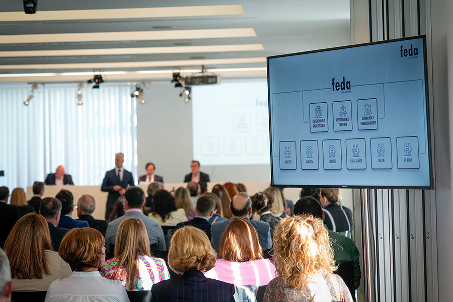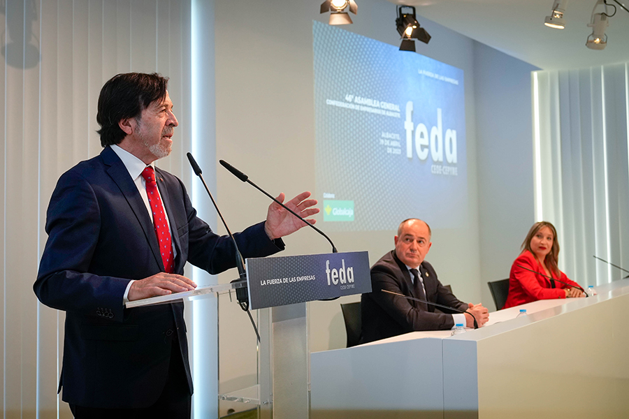 Artemio Pérez no se olvidó del equipo de FEDA, al que reconoció su enorme trabajo. “El equipo de FEDA está siempre al pie del cañón y nuestros asociados lo sabéis. Se ha hecho más gestión por parte de los técnicos de atención al socio. Vamos a seguir trabajando juntos y juntas y haremos crecer nuestra provincia. Y con ello quiero poner también en valor el trabajo conjunto y coordinado entre FEDA y sus asociaciones. Y, sobre todo, que FEDA es una organización de puertas abiertas, que promueve la igualdad, en la que hay talante y talento, vocación de diálogo, negociación y servicio a las empresas”, dijo el presidente de la Confederación.