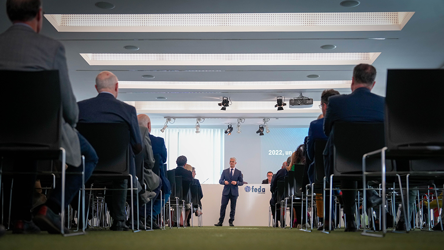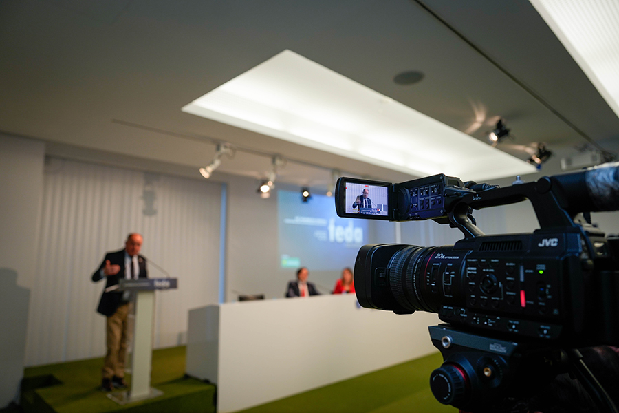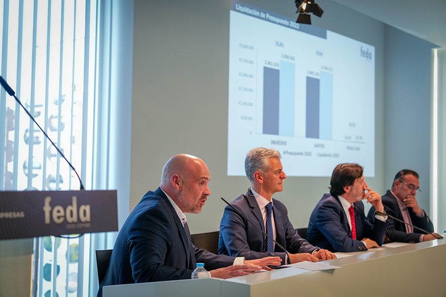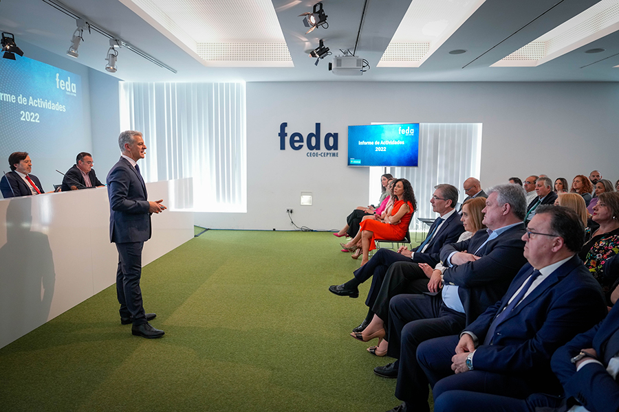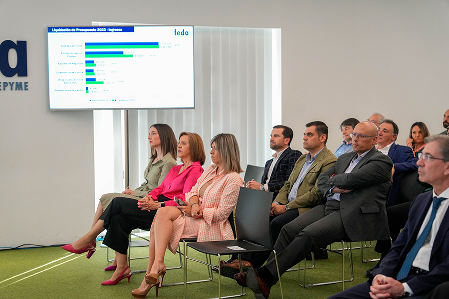La presentación del Informe de Actividades terminó con la proyección de unas imágenes con las que el secretario general reconoció el trabajo realizado por el equipo de FEDA, tanto en la sede central como en las distintas delegaciones, y el apoyo de empresarios/as, pymes y empresas.