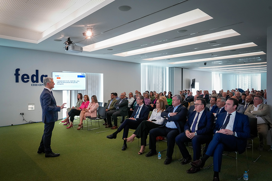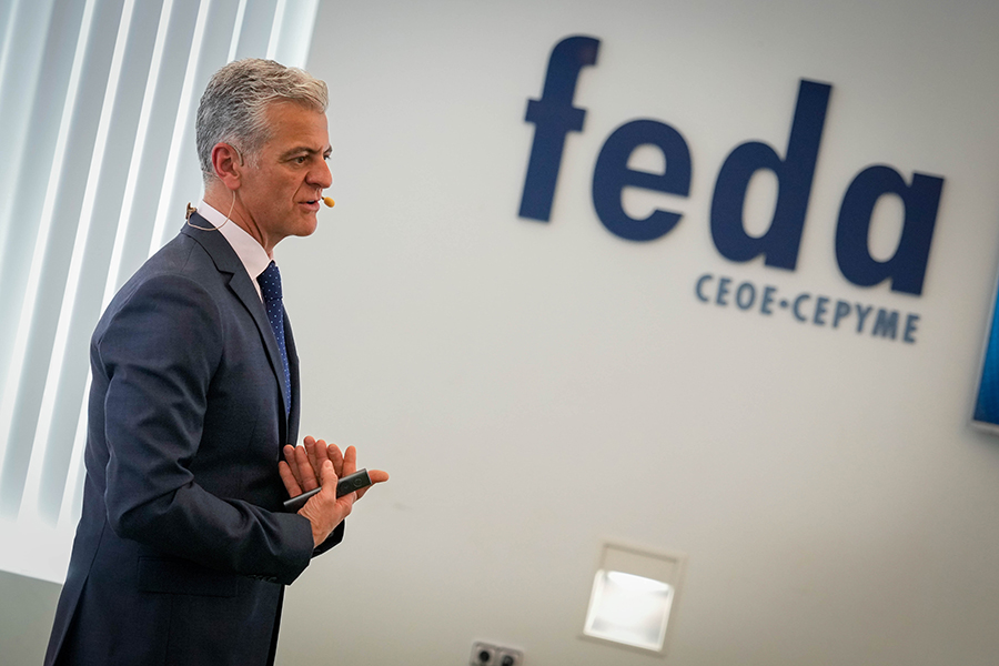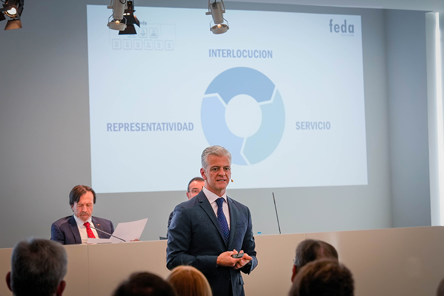 El secretario general de FEDA destacó las cinco líneas de negocio principales de la Confederación: internacional, inversión e innovación, igualdad, Escuela de Negocios y el Centro de Negocios. A lo largo de su intervención fue explicando cada una de ellas, haciendo hincapié en los hitos que se han conseguido.