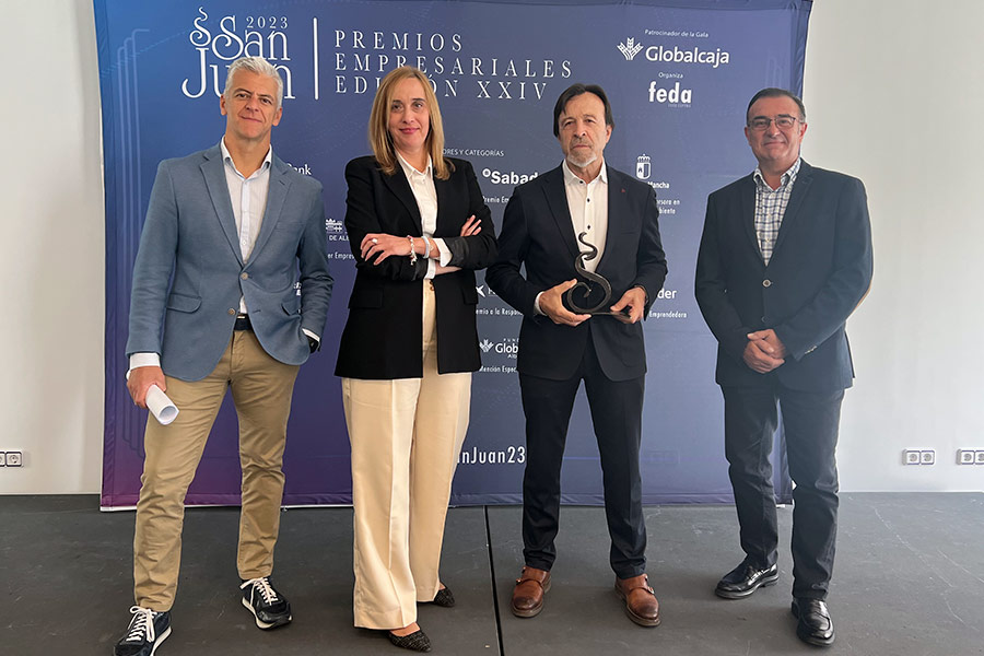 El presidente de FEDA, Artemio Pérez Alfaro, ha hecho público hoy a los medios de comunicación el fallo del Jurado de los Premios Empresariales San Juan’2023-XXIV Edición, acompañado de la vicepresidenta Rosario Jiménez, el secretario del Comité Ejecutivo, Juan Manuel García, y el secretario general, Vicente García, como representantes del Comité Ejecutivo de FEDA en el Jurado de los Premios. Sus primeras palabras han sido de agradecimiento al Jurado que sea fiel cada año a esta cita y, por supuesto, ha destacado el compromiso de los patrocinadores con la convocatoria de estos Premios: CaixaBank, BBVA, Banco Sabadell, Junta de Comunidades de Castilla-La Mancha, Eurocaja Rural, Diputación Provincial de Albacete, La Tribuna de Albacete, Soliss Seguros, Beatriz Hoteles, Banco Santander, Fundación “la Caixa” y el Ayuntamiento de Albacete. Fundación Globalcaja-Albacete es el colaborador en la Mención Especial del Jurado, y Globalcaja que va de la mano de FEDA en la Gala de entrega de estos Premios es el colaborador en la Mención Especial del Jurado, y Globalcaja, como patrocinador de la Gala de entrega de los Premios San Juan, que se celebrará el próximo 16 de junio, en el Palacio de Congresos.