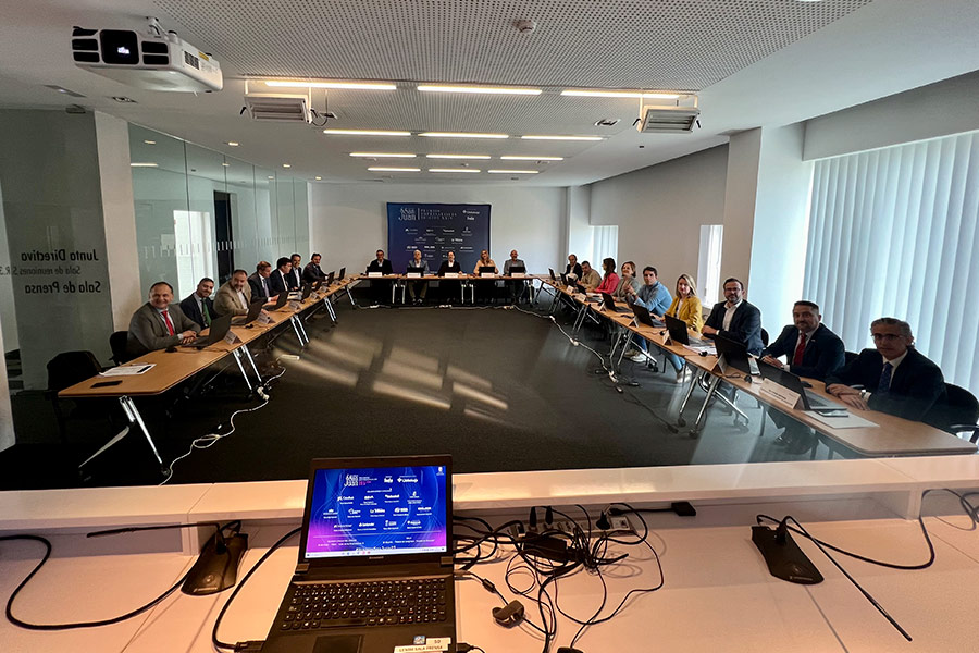 Por las administraciones: Miguel Juan Espinosa, subdelegación del Gobierno; Nicolás Merino Azorín, director provincial Consejería de Economía, Empresas y Empleo Albacete; y Laura Avellaneda, en representación del Ayuntamiento de Albacete; y por la Universidad de Castilla-La Mancha, Rosario Pérez Morote, directora académica del Vicerrectorado.