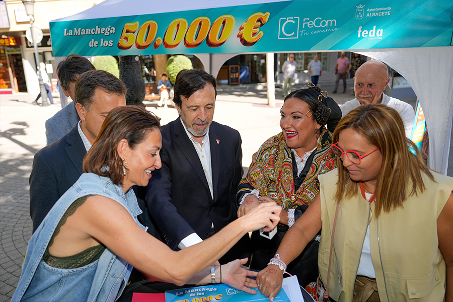 La campaña ha sido presentada en la plaza de la Constitución donde esta misma mañana ha empezado a repartir cheques la manchega. En la presentación ha estado el presidente de FECOM, José Lozano; el presidente de FEDA, Artemio Pérez Alfaro; y el alcalde de Albacete, Manuel Serrano, junto con la concejala Rosa González de la Aleja, y otros comerciantes que forman parte de la dirección de la Federación de Comercio de Albacete.