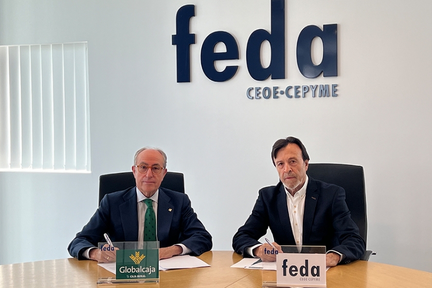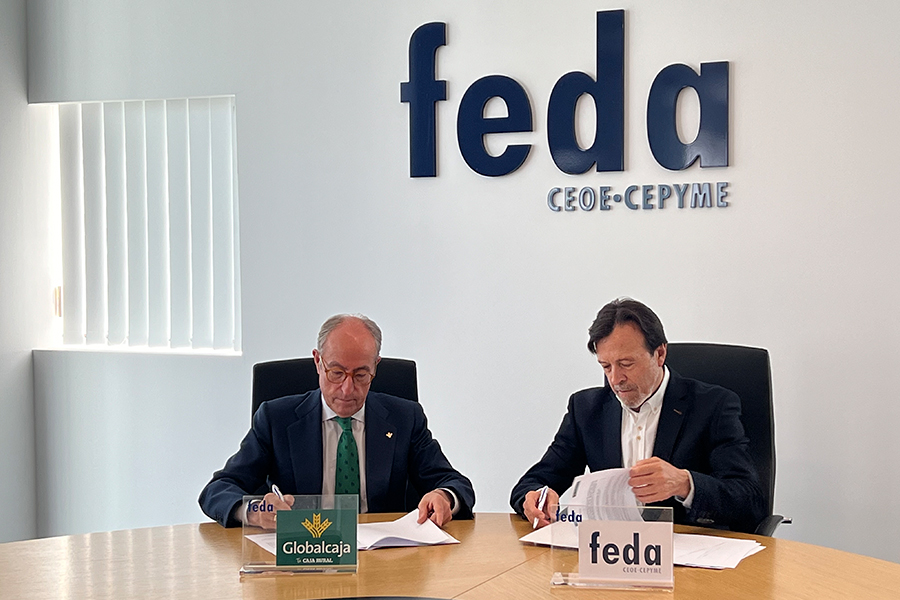 Con la firma del convenio, el presidente de la entidad, Mariano León Ejido, y el presidente de la Confederación, Artemio Pérez Alfaro, renuevan el compromiso de colaboración entre Globalcaja y FEDA, apostando por acciones de fortalecimiento y crecimiento del tejido empresarial de la provincia.