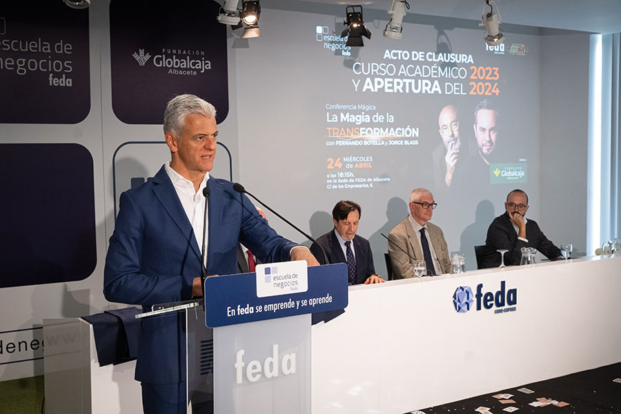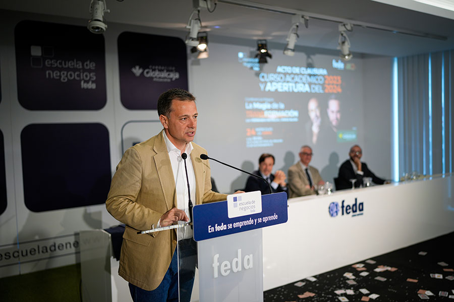 El presidente de FEDA terminó su intervención compartiendo una reflexión: “Lo extraordinario de las humanidades es que recurren a las palabras para dar claridad a tiempos oscuros”. Por eso, añadió, “desde Escuela de Negocios FEDA apostamos para los nuevos directivos, y también para los que lo son ahora, por conocimientos en estrategia, innovación, ética y cumplimiento, sostenibilidad y gestión del talento. Escuela de Negocios FEDA está en el ahora, pero explorando el futuro”.