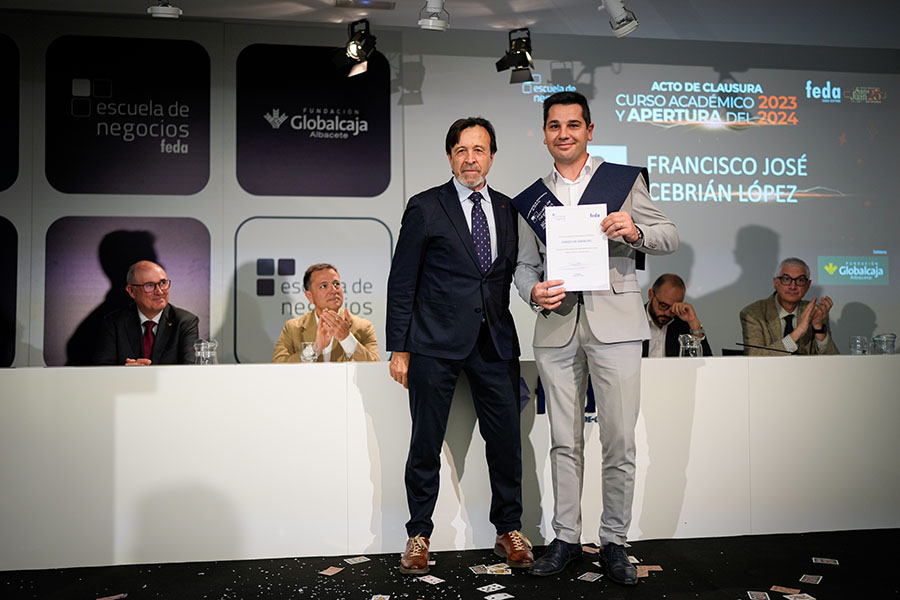 Por su parte, el vicepresidente de la Diputación Provincial, Fran Valera, que también felicitó a quienes han finalizado con éxito su formación, puso en valor la Escuela de Negocios FEDA, destacando la calidad de los programas que ofrece, e incidió en la importancia de la formación para el desarrollo personal y el progreso profesional, indicando que si, además, lleva el sello de FEDA es un valor añadido: “Venir a formarse a FEDA es buscar la excelencia”.