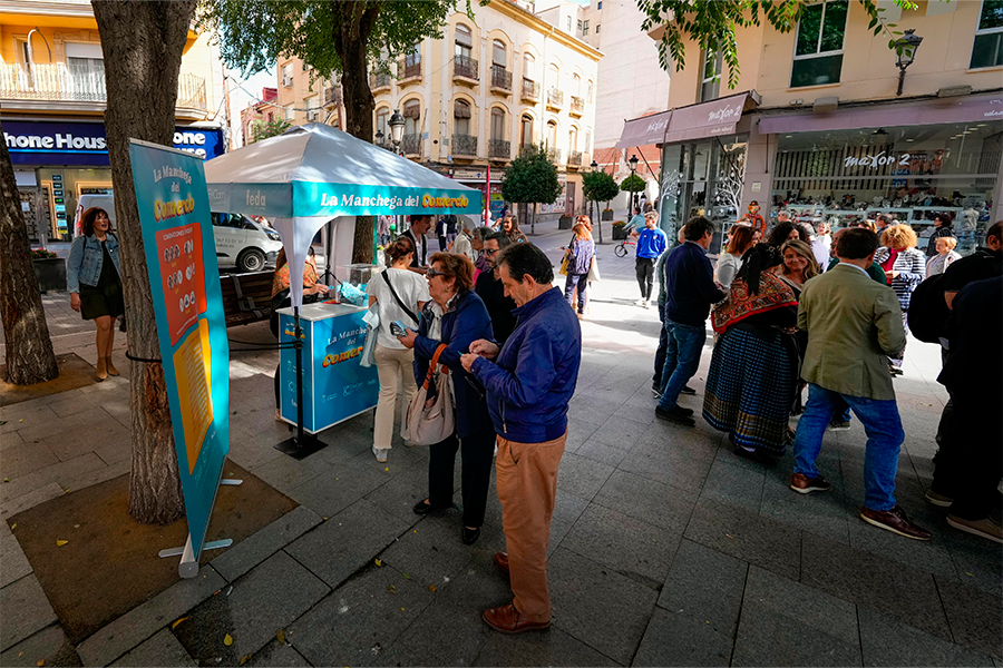 La campaña ha sido presentada en la plaza de Mayor de Albacete, donde esta misma mañana ha empezado a repartir cheques la manchega. En la presentación ha estado el presidente de FECOM, José Lozano; el presidente de FEDA, Artemio Pérez Alfaro; y el alcalde de Albacete, Manuel Serrano, junto con la concejala de Emprendimiento, Lucrecia Rodríguez de Vera, y otros comerciantes que forman parte de la dirección de la Federación de Comercio de Albacete.