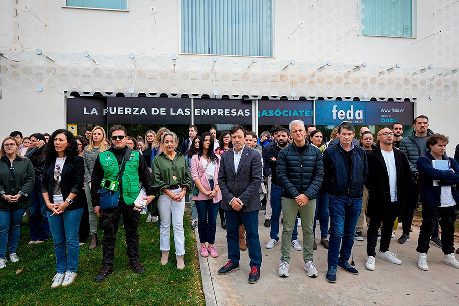 FEDA, en su sede de Albacete (c/ de los Empresarios, 6), su equipo técnico y alumnos del MBA, junto al presidente y otros miembros del Comité Ejecutivo, ha guardado cinco minutos de silencio como acto de solidaridad para mostrar nuestro apoyo y el de todas las empresas, autónomos y trabajadores de la provincia de Albacete, hacia aquellos que han sufrido las graves consecuencias de la DANA.