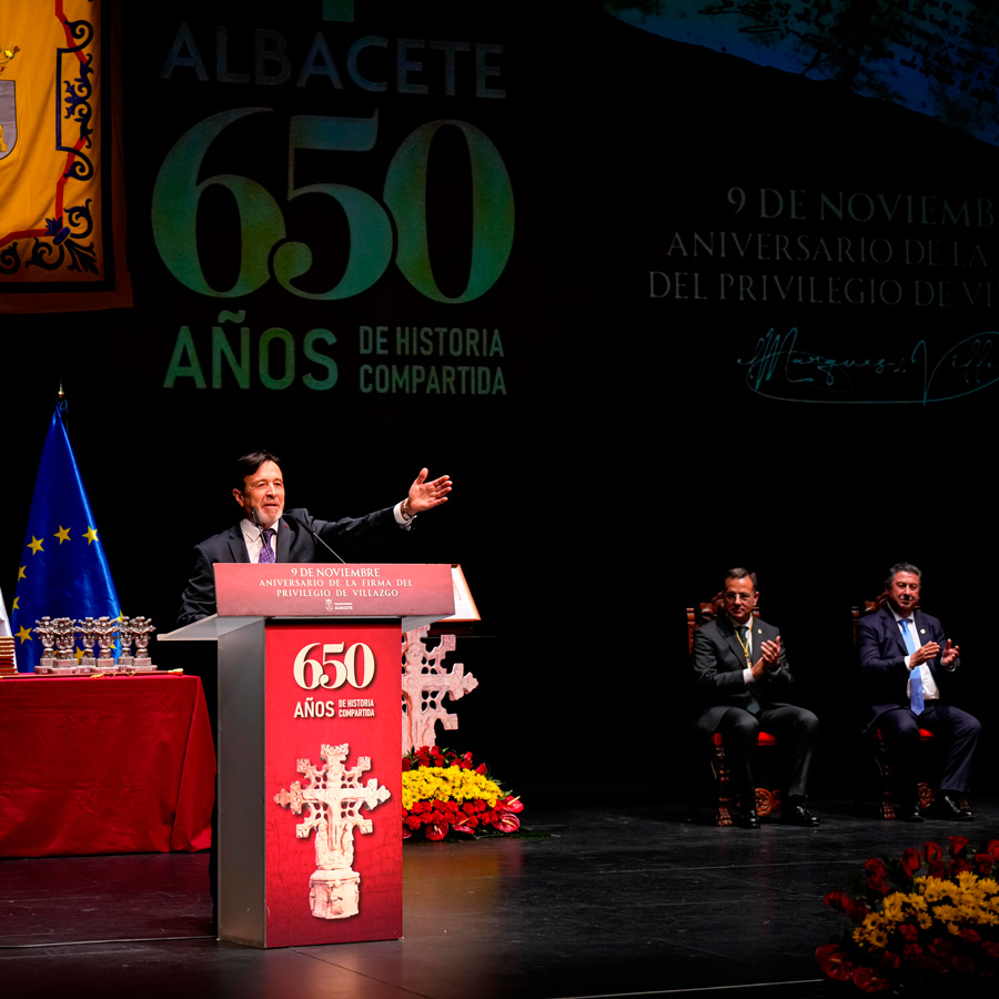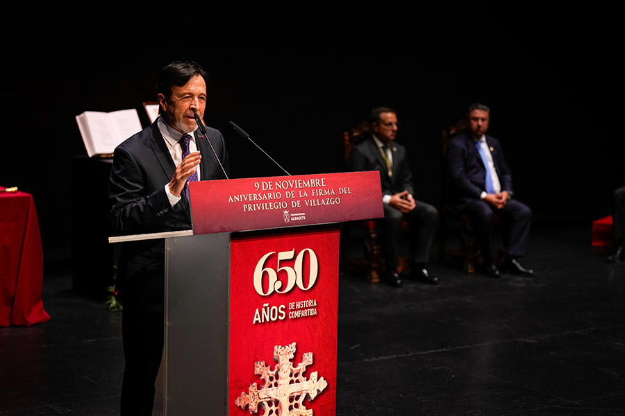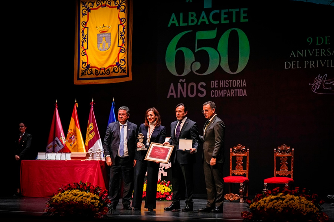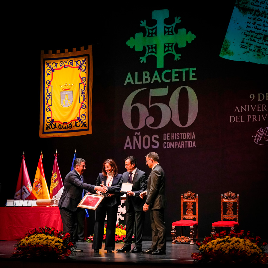 El presidente de FEDA, Artemio Pérez Alfaro, fue el encargado de recoger la Medalla de Oro de la Ciudad, que el Ayuntamiento, ha concedido a la Confederación en la celebración del del Acto Institucional del Día de Albacete, celebrado ayer en el Teatro Circo, en la conmemoración del 650 Aniversario de la firma del privilegio de Villazgo.