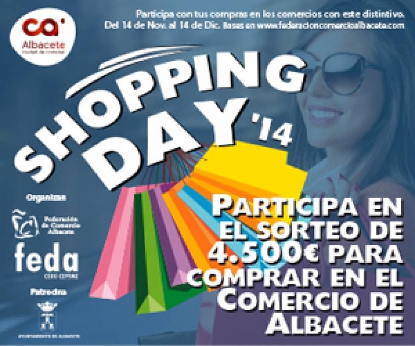 Desde la Federación de Comercio de Albacete, integrada en FEDA, con el fin de dar continuidad a las acciones de dinamización que se vienen realizando dentro del Plan de Promoción al Comercio firmado con el Ayuntamiento de la ciudad, se ha lanzado un año más la campaña “Shopping Day 2014”. Esta iniciativa persigue fomentar las compras en los establecimientos que participen, promocionar la marca “Albacete, ciudad de compras”, así como apoyar al pequeño comercio, sustento importante para la economía albaceteña.