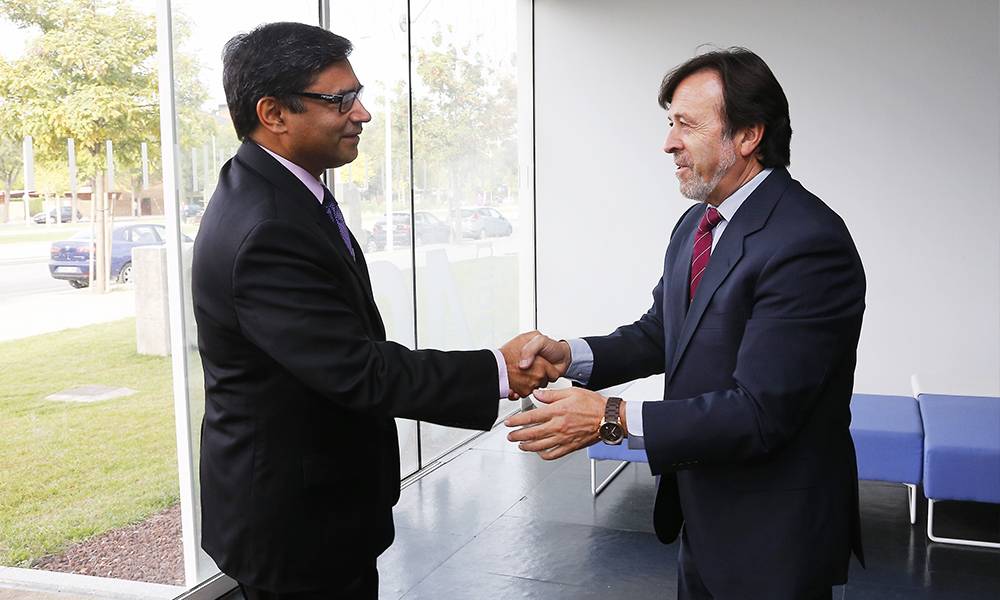 El embajador de la India en España, Vikram Misri, ha visitado la sede de FEDA, al tiempo que ha mantenido una reunión sobre las posibilidades comerciales de empresas de Albacete con su país. El embajador ha sido recibido por el presidente de FEDA, Artemio Pérez Alfaro, acompañado por el vicepresidente Juan Martínez, y el presidente de ADIEX, Miguel Tapiador. El embajador ha venido acompañado por el cónsul general honorario de India en Barcelona, Luis Valeriano.