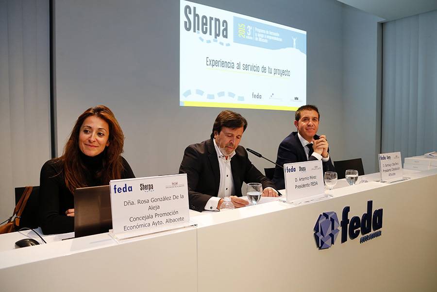 La sede de FEDA acogió la clausura del tercer proyecto Sherpa para emprendedores que ha sido todo un éxito. Y durante todo el día del jueves, la sede de los empresarios de Albacete acogía la exposición de los proyectos. A partir de las seis, llegaba la visita institucional. Los participantes, han sido 40 y 12 eran los finalistas.