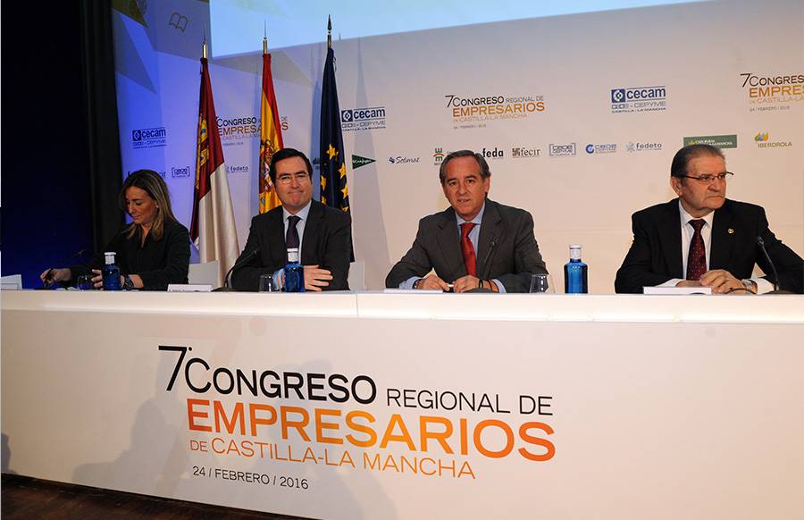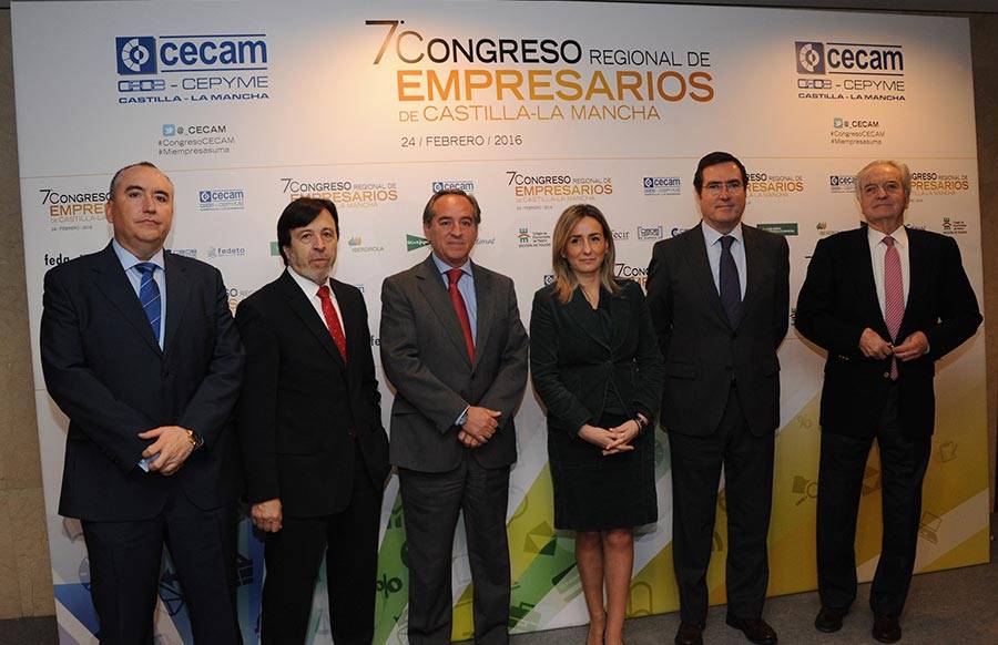 El 7º Congreso Regional de Empresarios de CECAM, que se ha desarrollado bajo la Presidencia de Honor de Su Majestad el Rey Don Felipe VI, daba comienzo con la inauguración del acto a cargo de la Alcaldesa de Toledo, Milagros Tolón, que ha estado acompañada por el Presidente de CECAM, Ángel Nicolás y por el Presidente de CEPYME, Antonio Garamendi.