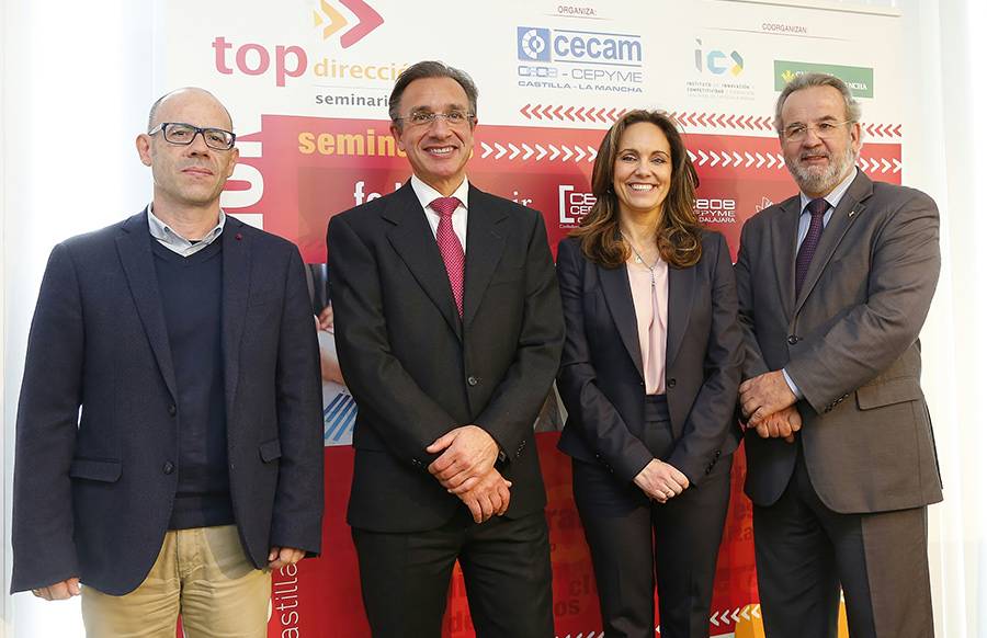 El seminario, promovido por CECAM y FEDA, en colaboración con la Fundación Caja Rural Castilla-La Mancha y su Instituto de Innovación y Competitividad, fue inaugurado por la directora de la Fundación Caja Rural Castilla-La Mancha, Ana Isabel López-Casero, y el responsable de Formación y Escuela de Negocios FEDA, Carlos Muñoz.