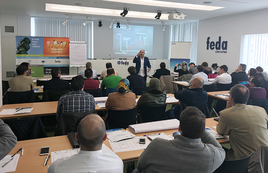 FEDA, como siempre en su compromiso con el tejido empresarial de Albacete, sus emprendedores y personas en búsqueda activa de empleo, ha desarrollado, gracias a ser nodo de la Enterprise Europe Network y el apoyo de BBVA, su primera conferencia-taller dentro del II Ciclo de Innovación e Internacionalización 2017. El aforo se completó dando prioridad a las empresas socias de la Confederación, obteniendo como resultado la nota más alta en encuestas participantes dentro de este Ciclo, que durante 8 años antes se enfocó principalmente al comercio exterior, y amplió su perspectiva gracias a la Dirección Técnica de ADIEX hace 2 años.