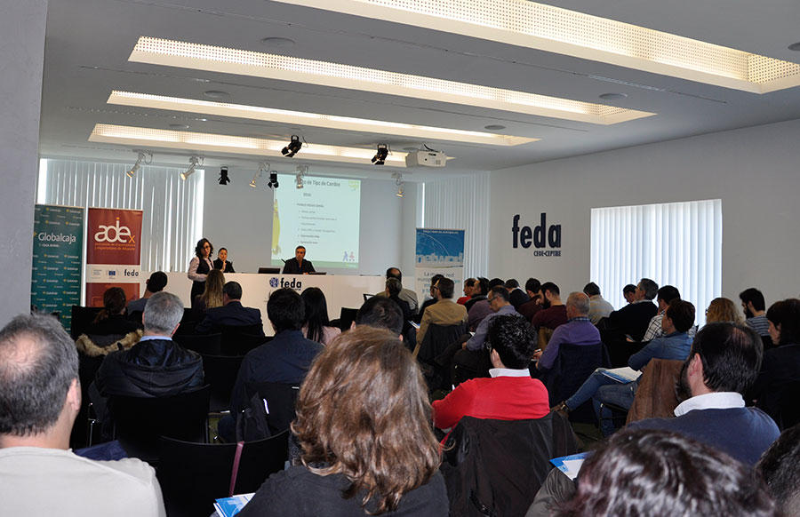 Con el aforo completo, la encargada de abrir la ponencia fue Évelin R. Molano, responsable del Departamento de Asociaciones y Áreas Técnicas de FEDA, quien destaco los servicios de innovación e internacionalización que se prestan desde hace más de 10 años en la Confederación. Tras su intervención llegó el turno de María José Olmeda, responsable de Comercio Internacional de Globalcaja, quien explicó las facilidades que ofrece su entidad a las empresas que quieren internacionalizar sus productos y servicios.