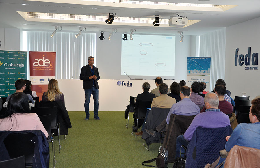 Alex López impartió con gran éxito la Jornada “Planificar y gestionar la presencia de tu empresa en redes sociales: Twitter y Linkedin para uso profesional dentro del mercado internacional”, enmarcada dentro del II Ciclo de Seminarios sobre Innovación e Internacionalización para la PYME 2017. La Jornada ha estado organizada por el Área Internacional de FEDA, desde su pertenencia al Enterprise Europe Network, contó con la colaboración de Globalcaja y se llevó a cabo bajo la dirección técnica de la Asociación de Importadores y Exportadores de Albacete (ADIEX).