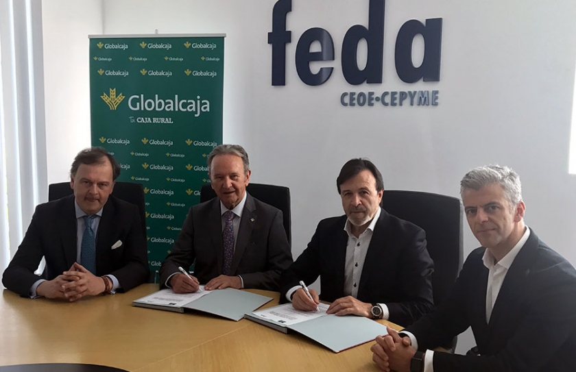 Este acuerdo de colaboración ha sido firmado por el presidente de FEDA, Artemio Pérez Alfaro; y el presidente de Globalcaja, Carlos de la Sierra Torrijos, acompañados por el secretario general de FEDA, Vicente García Martínez y el director de relaciones institucionales de la entidad, Antonio González.