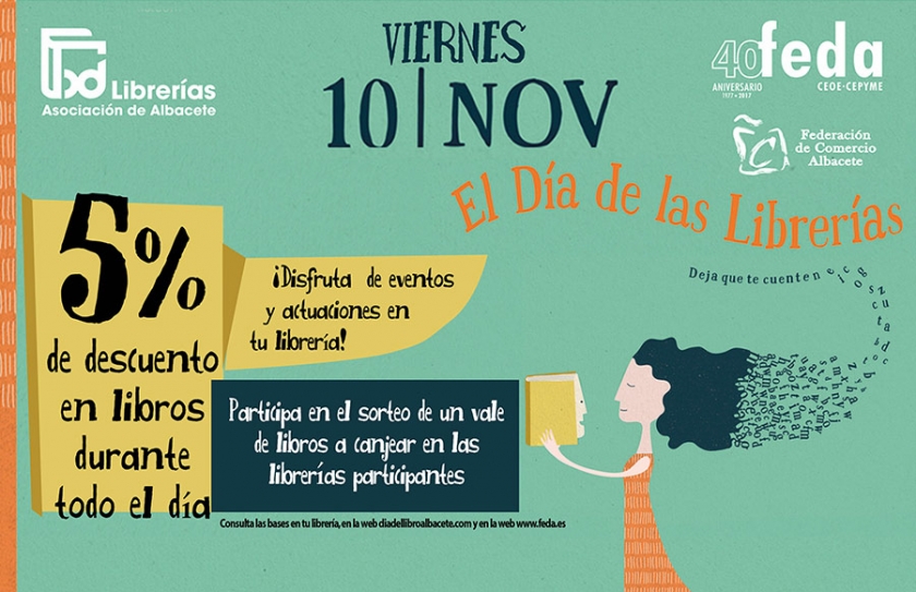 Con motivo de la celebración del Día de las Librerías, que tendrá lugar el próximo viernes 10 de noviembre, la Asociación de Librerías y Papelerías de Albacete, integrada en FEDA, ha organizado una acción de promoción de las librerías tradicionales de Albacete y provincia.