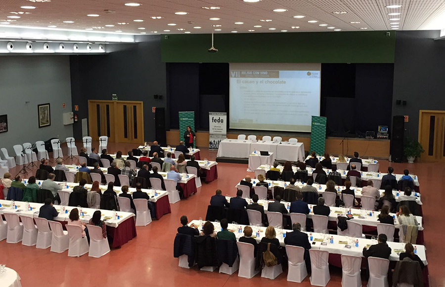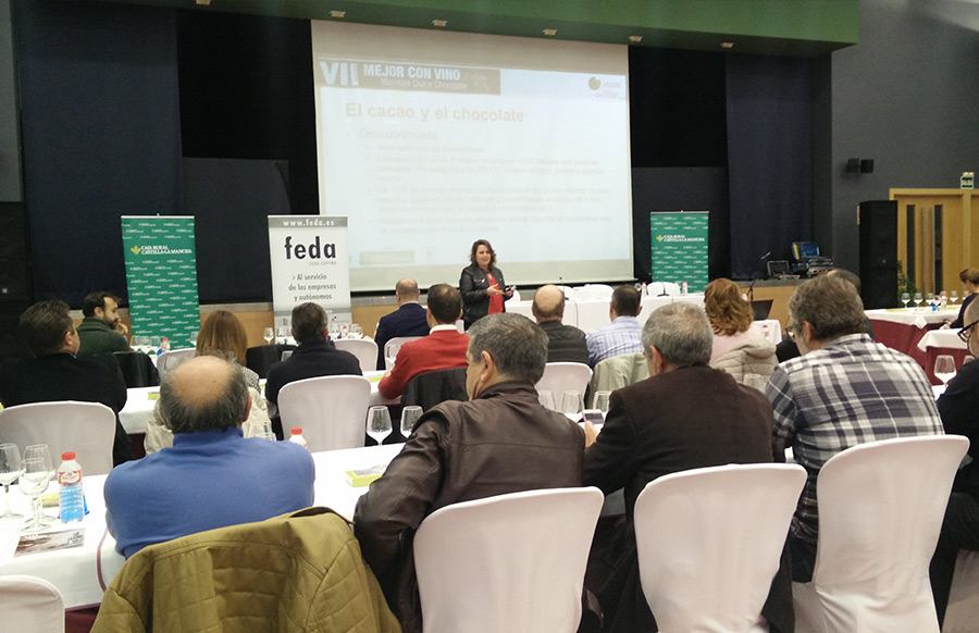 El inicio del evento fue la conferencia 'Vino y chocolate, gran experiencia sensorial', a cargo de la técnica especialista en alimentación Josefina Galisteo, responsable de calidad y desarrollo de producto de la empresa almanseña chocolatería Fridul. Fue guiando la cata de los bombones propuestos para la ocasión, una mezcla de varios chocolates que hizo las delicias de los asistentes.