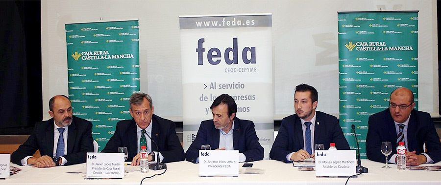 El alcalde agradeció a FEDA su apuesta por Caudete, y el presidente de Caja Rural Castilla-La Mancha, Javier López Martín, resaltó el compromiso de la Confederación con los diferentes sectores empresariales y aludiendo al sector del vino dijo que “los retos de comercialización son muy elevados para un sector que necesita asentar sus bases comerciales. Si queremos rivalizar en precio y calidad, tenemos que competir en inversión e infraestructuras, y ahí es donde Caja Rural Castilla-La Mancha está ofreciendo la liquidez y financiación que requieren las cooperativas y bodegas para ganar en dimensión y fortaleza”. El presidente local de FEDA agradeció a todos que Caudete haya sido este año la sede de este evento.
