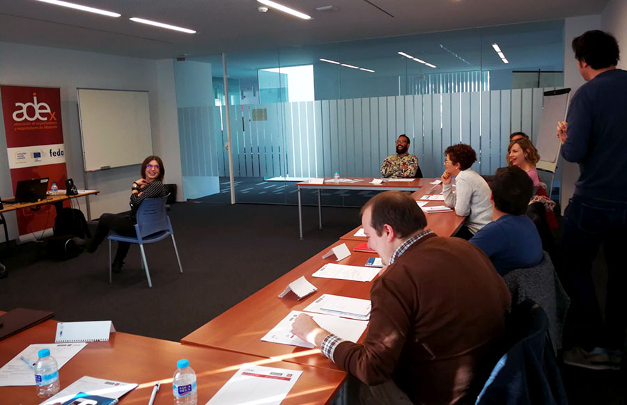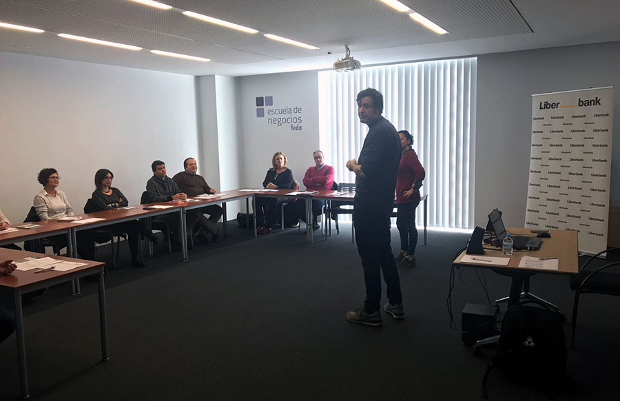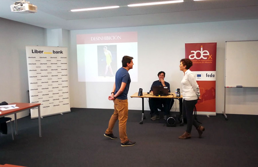 El taller de ocho horas que se ha organizado en FEDA, gracias a la colaboración de Liberbank y la dirección técnica de ADIEX, contó nuevamente con Pablo Vergel, un formador que de manera práctica demuestra a los alumnos como deben relacionarse con el inglés a través de distintas actividades y dinámicas, a la vez que se establece una hoja de ruta para desarrollar de manera cotidiana y que es la verdadera esencia del curso.