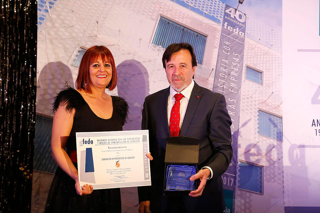 Otro merecido homenaje ha sido a los periodistas y medios de comunicación de Albacete, por ser el altavoz de FEDA en estos 40 años, por estar siempre en la información que genera la Confederación, tanto en Albacete como en sus delegaciones de Almansa, Hellín, Caudete, La Roda y Villarrobledo. Un papel que también fue elogiado por el presidente de FEDA.