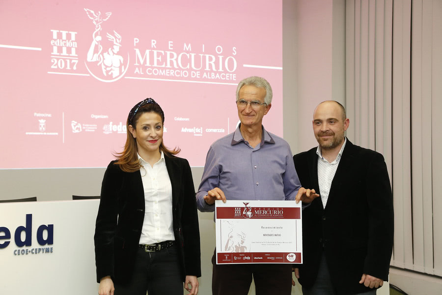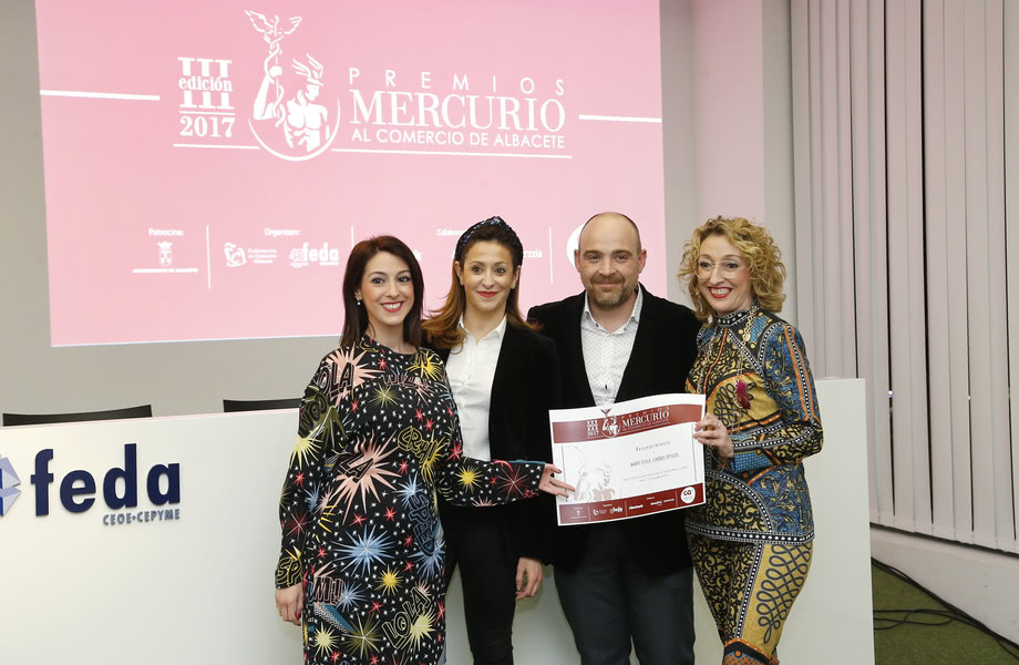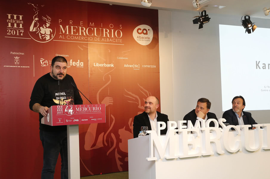 Los comercios de Albacete ya tienen sus Premios Mercurio. La tercera edición de estos galardones de reconocimiento al sector comercial de Albacete se entregaron en un acto celebrado en la noche de ayer en la sede de FEDA.