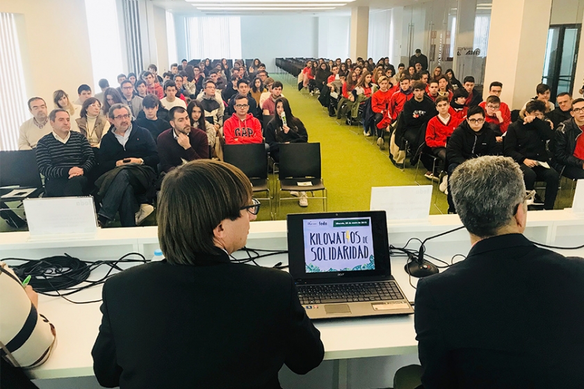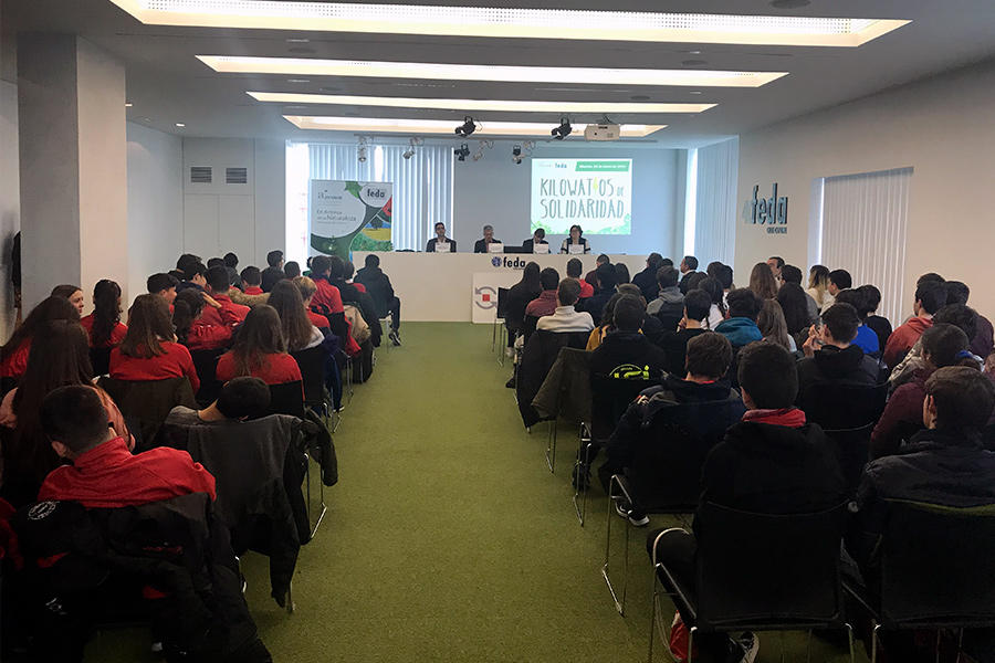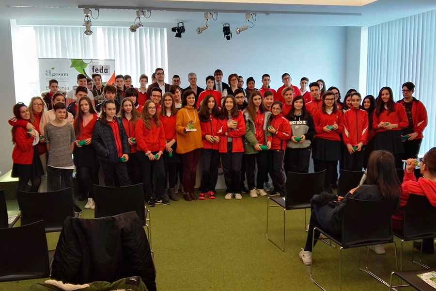 Coincidiendo con el Día Mundial de la Educación Ambiental, AGESAM, Asociación de Gestores Ambientales de Albacete, que preside Eduardo Blanes, ha reunido en FEDA a los alumnos de los tres centros de Educación Secundaria Obligatoria de la provincia de Albacete que han sido los ganadores de la campaña “Kilowatios de Solidaridad”: IES Cristóbal Lozano (Hellin), IES Amparo Sanz (Albacete) y el Colegio Santo Ángel (Albacete), y que han recibido como trofeo la mascota de la Asociación.