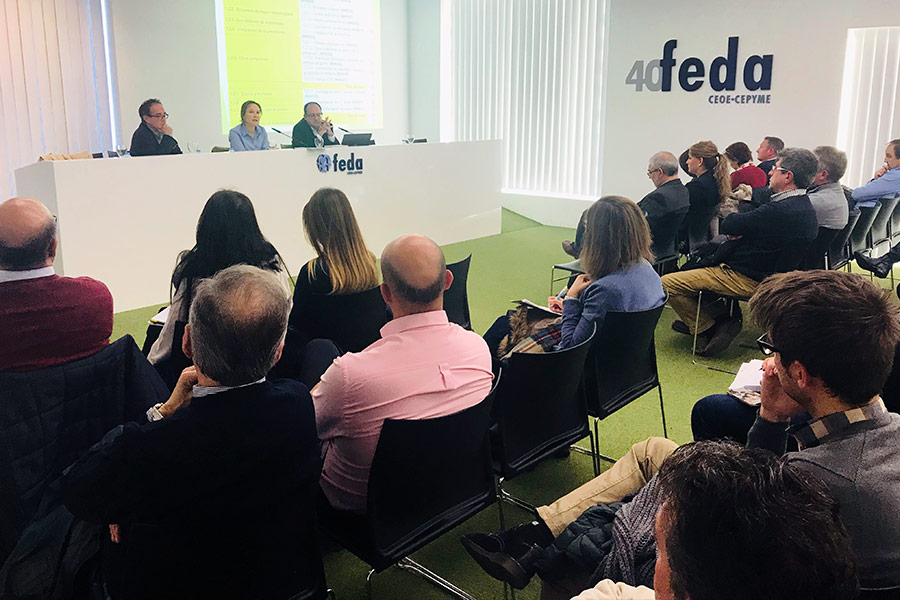 De la mano de FEDA, los empresarios han sido informados de las campañas de actuación prioritarias que la Inspección Provincial de Trabajo y Seguridad Social va a llevar a cabo en este año 2018, centrándose fundamentalmente en la parte de prevención en los riesgos en trastornos musculo esqueléticos especialmente en los trabajadores camareras y camareros de piso y los empleados destinados en almacén en el sector comercio, empresas dedicadas al tratamiento de residuos (concretamente tratamiento de aguas) y los trabajadores agrarios, especialmente aquellos que acompañan a las cosechadoras en la recogida de productos.