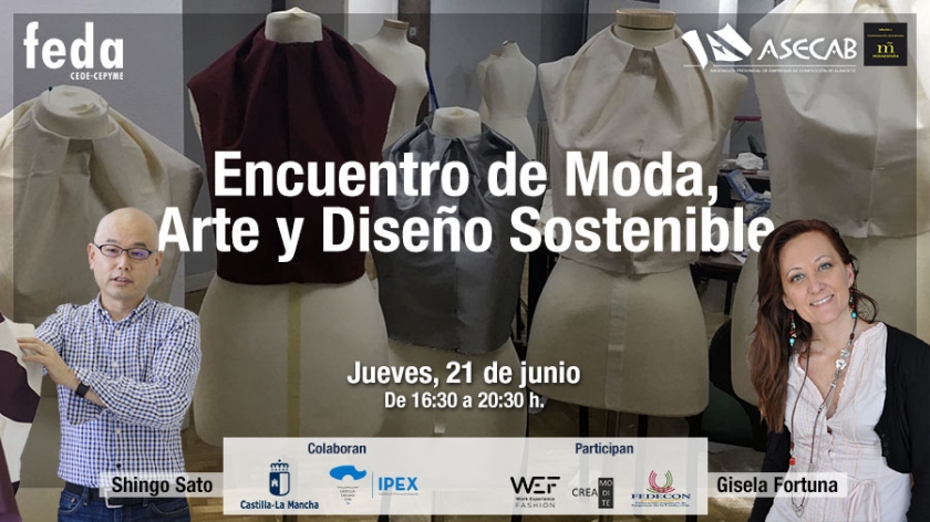 La Asociación de Empresarios de la Confección, ASECAB, junto con FEDA, y gracias a la colaboración de la Dirección General de Empresas, Competitividad e Internacionalización y el Instituto de Promoción Exterior de Castilla-La Mancha, IPEX organizan el primer Encuentro de Moda, Arte y Diseño Sostenible, abierto para nuestra ciudad, en la que también analizaremos los resultados y el impacto del plan de activación de la marca ModaEspaña.