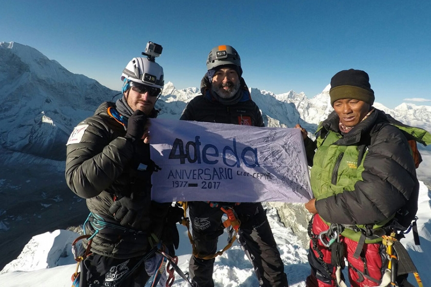 Con Juan Arrés, presidente de la Delegación de Caudete, el 40 Aniversario de FEDA ha llegado a las altas cumbres del Everest. En el Island Peak (Imja Tse) una montaña en el Parque Nacional de Sagarmatha en el Himalaya de Nepal, a 6.189 metros.