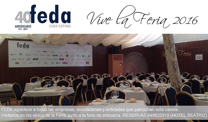 Caseta de FEDA en la Feria de Albacete’2016. Un Caseta que será nuevamente un punto de encuentro empresarial, familiar y de la sociedad de Albacete y que tendrá la actividad y dinamismo que nosotros impregnemos con nuestra asistencia. Sin lugar a dudas, será un espacio muy muy agradable.