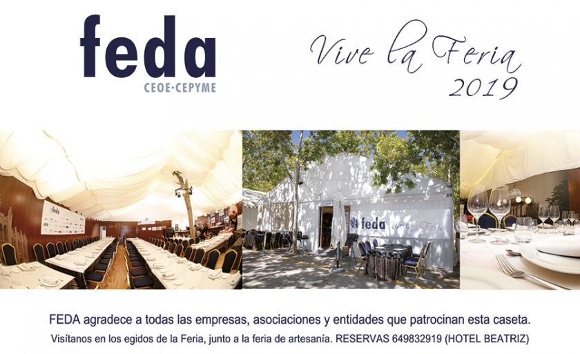 Caseta FEDA en la Feria de Albacete’2019. Un Caseta que será nuevamente un punto de encuentro empresarial, familiar y de la sociedad de Albacete y que tendrá la actividad y dinamismo que nosotros impregnemos con nuestra asistencia. Sin lugar a dudas, será un espacio muy muy agradable.