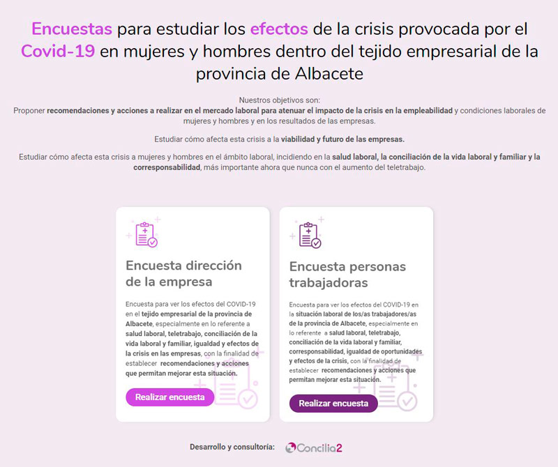 Las encuestas son ágiles, no más de 3 minutos, y permitirán analizar la gestión de crisis, medidas de protección y gestión, viabilidad o conveniencia del teletrabajo, conciliación, corresponsabilidad, efectos de la crisis en relación al volumen de negocio y capital humano, entre otros, lo que ayudaría a proponer políticas y acciones en el mercado laboral para atenuar el impacto de la crisis en la empleabilidad y condiciones laborales de mujeres y hombres y en los resultados de las empresas.