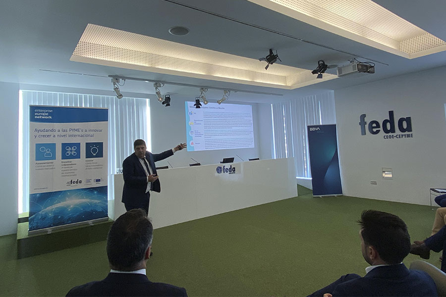 La responsable del Departamento de Asociaciones, Áreas Técnicas y Proyectos de FEDA, Évelin R. Molano, ha detallado los diferentes servicios que se ofrecen desde la Confederación de Empresarios, así como al alto porcentaje de proyectos subvencionables aprobados respaldados por FEDA. Eso, en gran medida, ha sido gracias a la propuesta de valor que otorga la Confederación: cercanía, agilidad, equipo multidisciplinar y experiencia contrastada; y con entrevistas `one to one’ con empresas, llevadas a cabo por el equipo técnico de Capazita, consultores y partner estratégico de FEDA desde 2014, a varias empresas con las que han trabajado de la mano para ayudarles a hacer frente a retos específicos, muchos de ellos, muy comunes en el tejido empresarial de nuestra provincia.