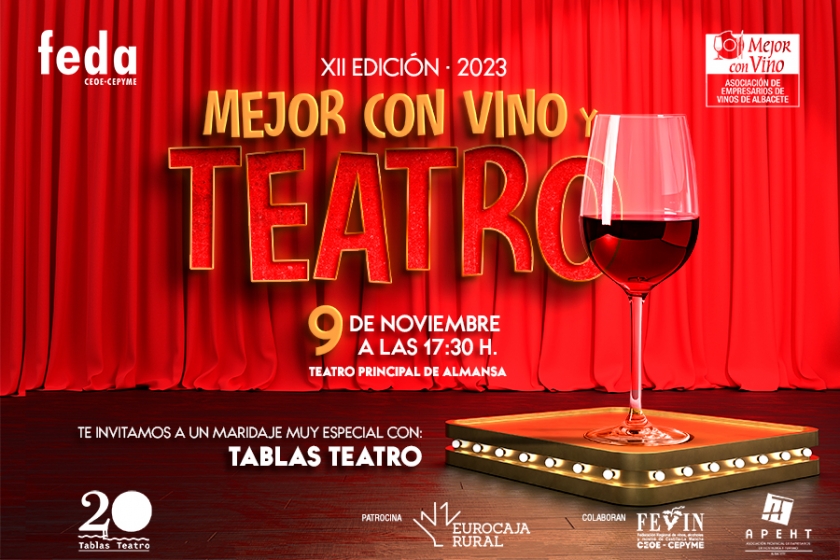 La convocatoria de Mejor con Vino, organizado por FEDA y su Asociación de Empresarios de Vinos de Albacete, ya va por su doce edición. Este evento cuyo objetivo principal es la promoción y unidad del sector hostelero, gastronómico y vinícola de toda la provincia, ya ha pasado por diferentes localidades de la provincia como La Roda, Caudete, Hellín, Villarrobledo o Casas Ibáñez y varias ediciones en Albacete, y este año se desplaza hasta Almansa, donde ya está todo preparado para maridar vino de la tierra con una brillante representación teatral.