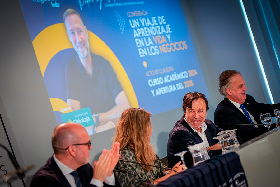 En una entretenida conferencia, Pedro García Aguado recordó que “si como líder no haces que los tuyos crean en la estrategia que planteas, va a ser difícil que salga bien”, y animó a los alumnos y alumnas a dar importancia a aspectos emocionales y les instó a luchar por sus objetivos: “A veces nos cuesta entender que para cambiar las cosas hay que creérselo”.