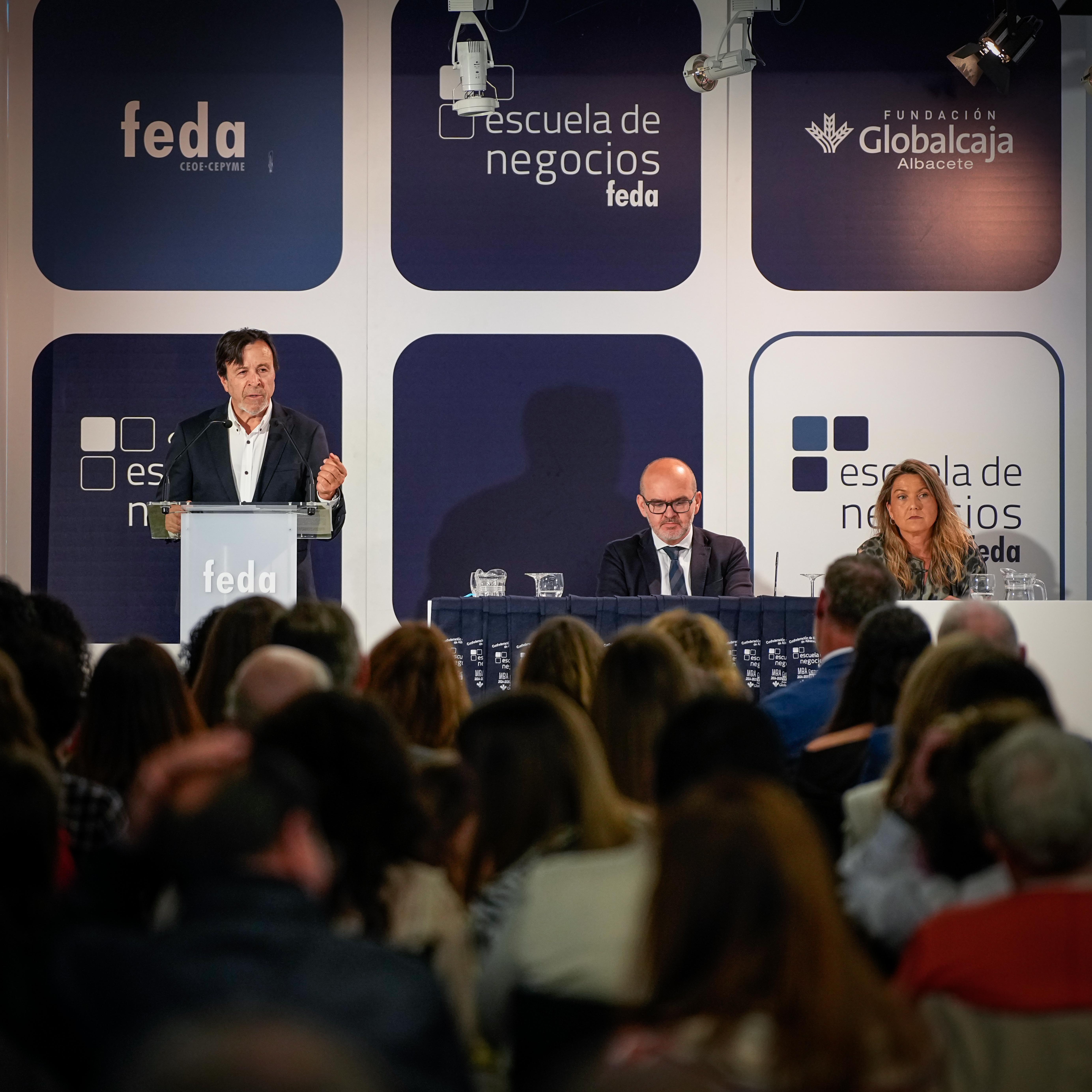 El apoyo a FEDA y a Escuela de Negocios FEDA vino de la mano de las diferentes instituciones, conscientes de la formación de excelencia que se ofrece desde la Confederación de Empresarios. Antonio González, director de Fundación Globalcaja, reconoció que en la entidad que representa “compartimos valores comunes con FEDA y con Escuela de Negocios”, destacando la excelencia de los programas formativos y lanzando un mensaje a los titulados y tituladas: “Tenéis que encontrar algo que améis. La única forma de hacer un gran trabajo es amar lo que hacéis”.