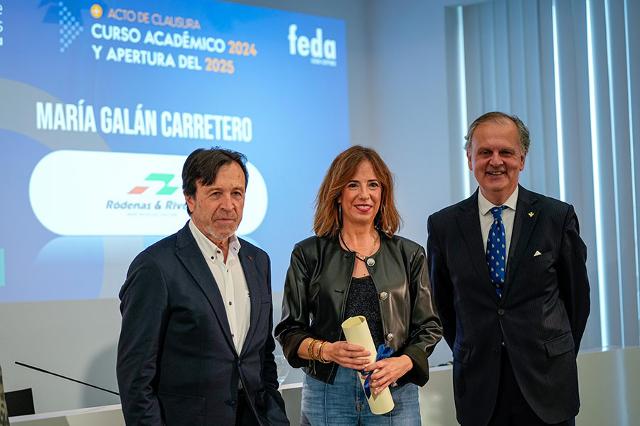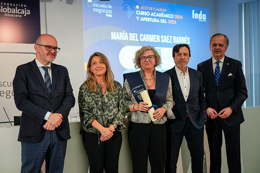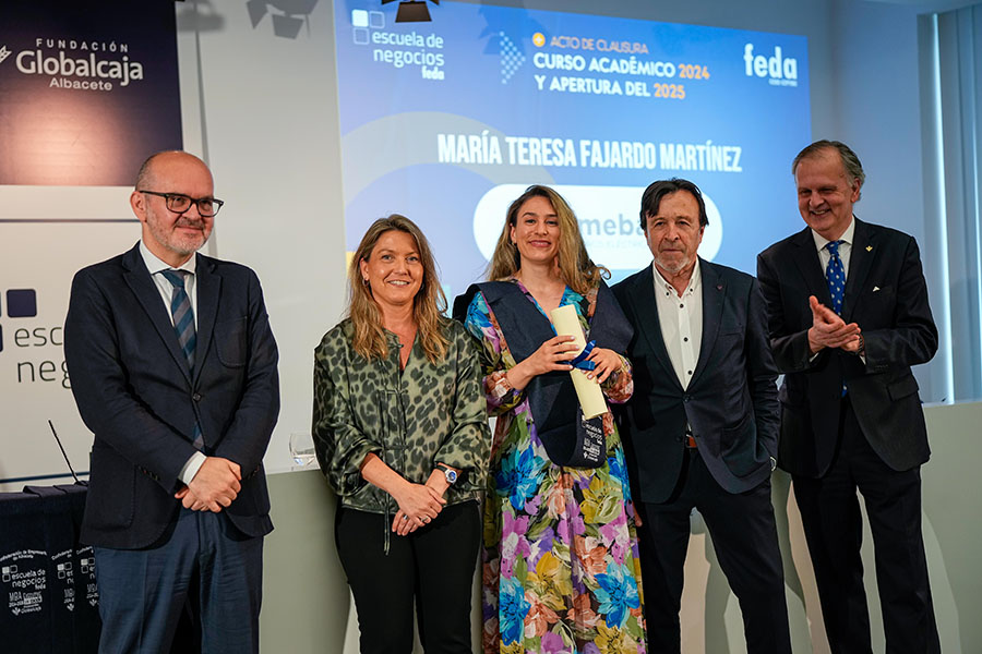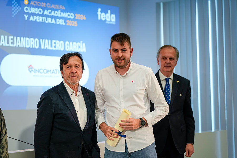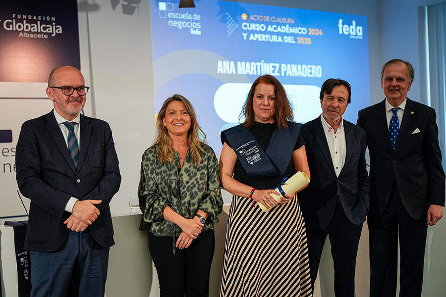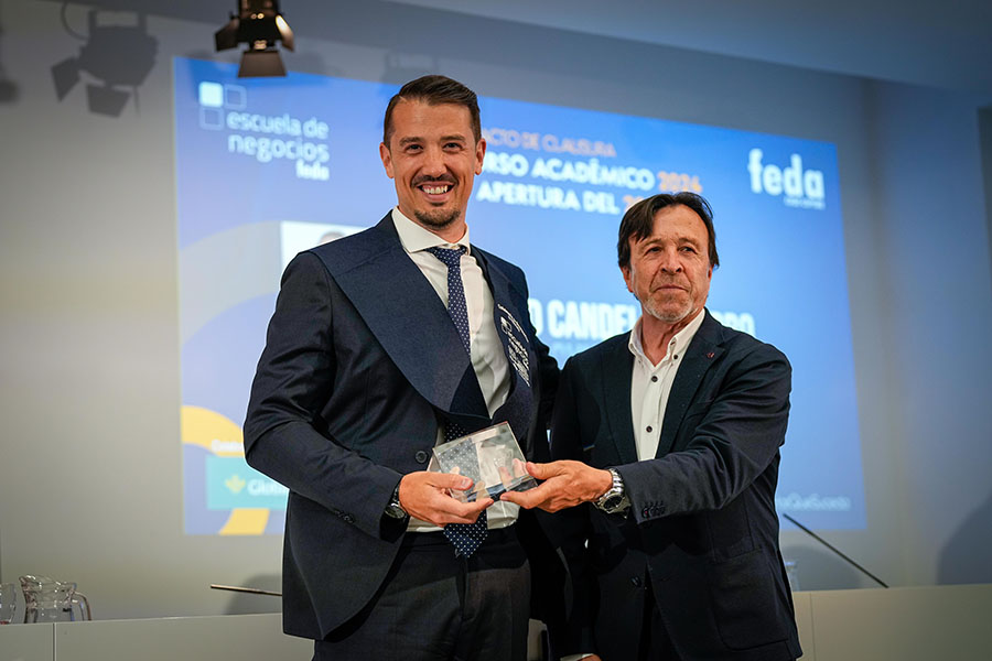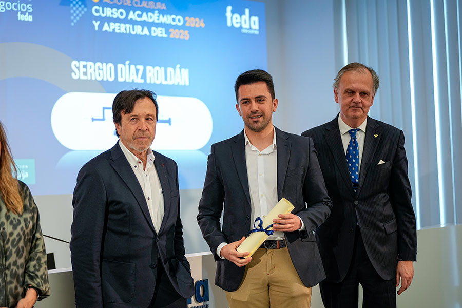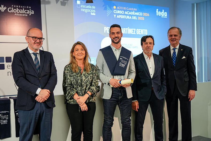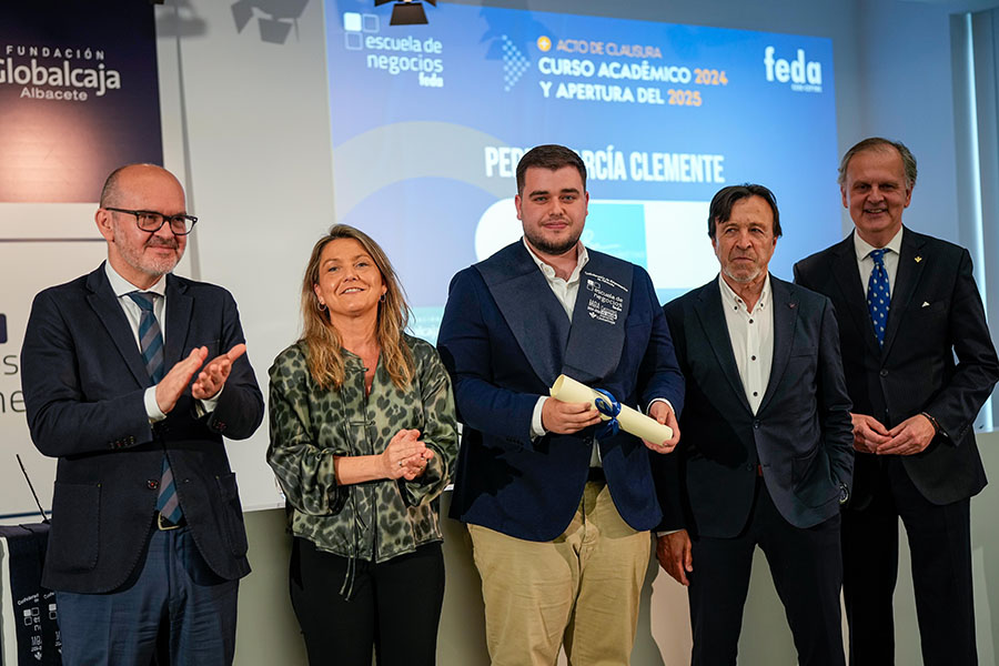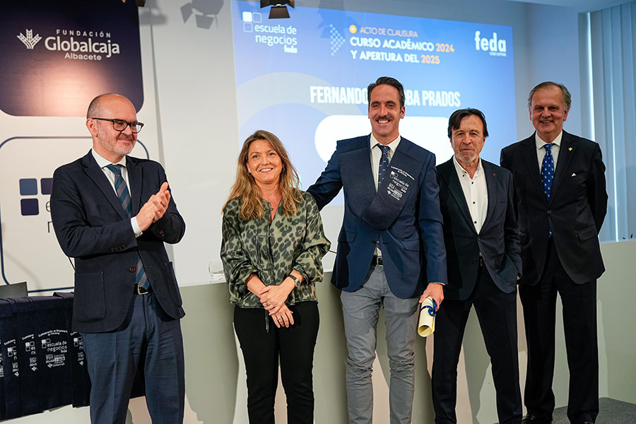 El Acto de Clausura del Curso Académico 2024-2025 de Escuela de Negocios FEDA entregó seis diplomas a la VIII Promoción del Programa Avanzado de Dirección Comercial y Marketing (DIRCOM) y quince en la XV Promoción del Máster en Dirección y Administración de Empresas (MBA Executive). De entre ellos recibió una mención especial David Candel Navarro, alumno con el mejor expediente de esta promoción, que sorprendido, pero agradecido, no le faltaron palabras de reconocimiento por el crecimiento personal y profesional que ha encontrado en esta formación de excelencia de Escuela de Negocios FEDA. Por su parte, en representación de todos ellos, tomó la palabra Mª Carmen Sáez, destacando que “entramos en FEDA y en su Escuela como semillas esperando el momento y el terreno adecuado para crecer. Y hemos crecido como profesionales y como personas”. Así, instó a sus compañeros y compañeras a ser “las semillas del cambio que queremos en el mundo empresarial”.