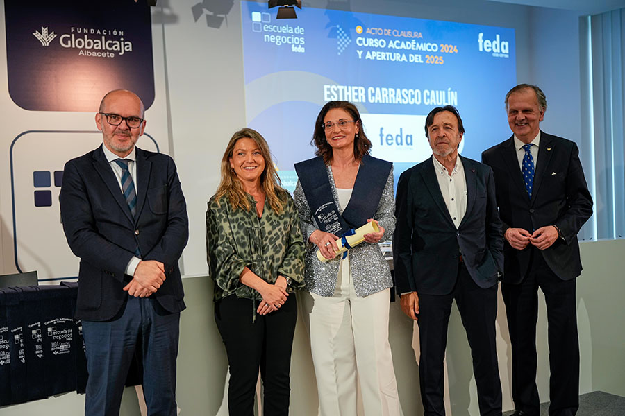 La sede de la Confederación de Empresarios de Albacete, FEDA, acogió la celebración del Acto de Clausura del Curso Académico 2024-2025 de Escuela de Negocios FEDA, con la entrega de los diplomas a los alumnos y alumnas titulados en la VIII Promoción del Programa Avanzado de Dirección Comercial y Marketing (DIRCOM) y en la XV Promoción del Máster en Dirección y Administración de Empresas (MBA Executive), al tiempo que se sirvió como apertura del nuevo curso académico 2025-2025, con 21 alumnos ya cursando el MBA, en su XVI Edición.