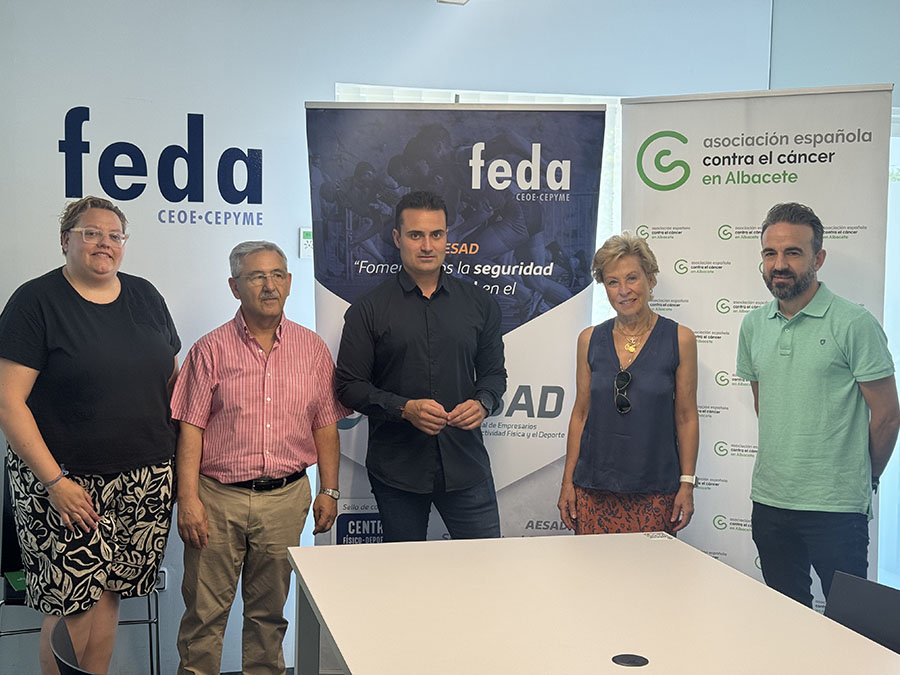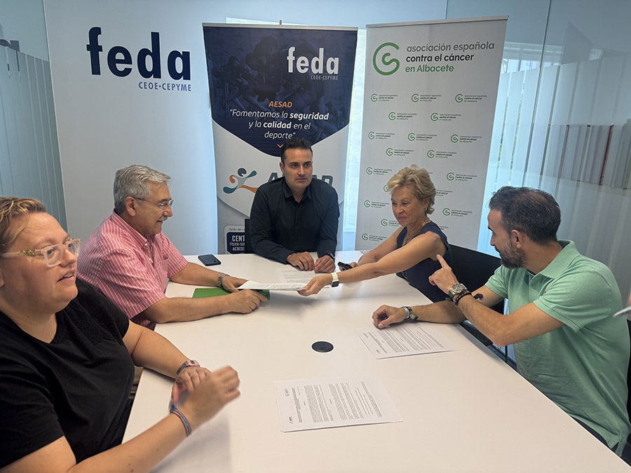 “Actividad física, deporte y salud” van de la mano en la prevención de muchas enfermedades. Promover hábitos de vida saludables como la actividad física continuada es beneficioso para la salud en la disminución de la probabilidad de ocurrencia de patologías como el cáncer, tanto en la prevención como en el abordaje del proceso oncológico. Este es el principal objetivo que persigue la firma del convenio de colaboración que han suscrito la Asociación Provincial de Empresarios de Servicios de la Actividad Física y el Deporte, AESAD, presidida por Victor Zafrilla, integrada en la Confederación de Empresarios de Albacete, FEDA y la Asociación Española contra el cáncer en Albacete, María Victoria Fernández Martínez.