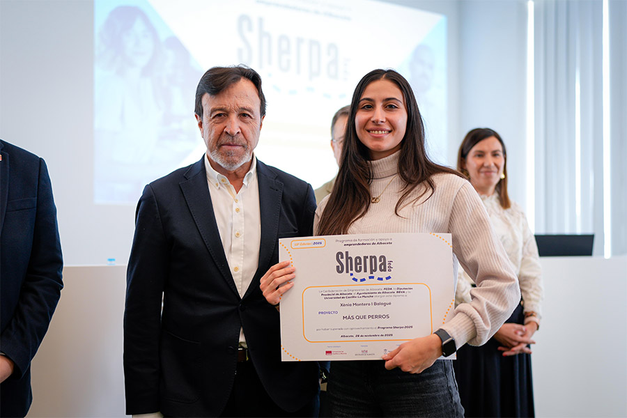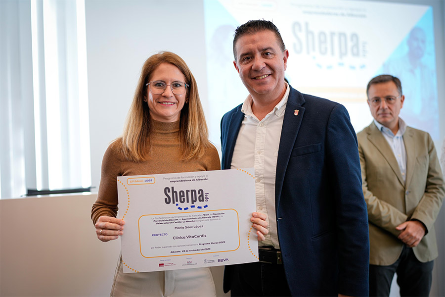El proyecto Clínica Vitacordis, de María Sáez López, es el ganador de la XIII Edición del Programa Sherpa de apoyo a emprendedores liderado por la Confederación de Empresarios de Albacete, FEDA, y que cuenta con el apoyo de la Diputación Provincial, el Ayuntamiento de Albacete y el BBVA, y con la Universidad de Castilla-La Mancha como partner estratégico.