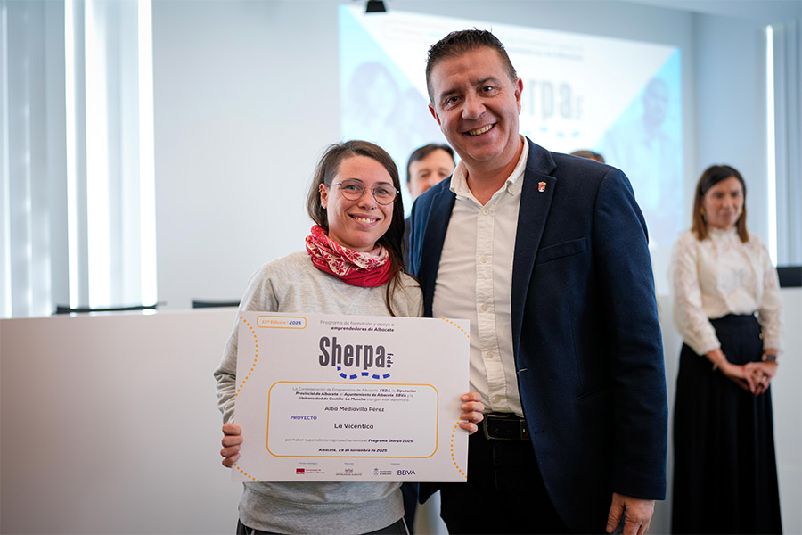 Santiago Cabañero, presidente de la Diputación, ha felicitado a los participantes y finalistas del Sherpa 2025, subrayando que quienes han pasado por el programa “ya pueden considerarse ganadores”, ya que la experiencia, el aprendizaje y la consolidación de sus proyectos constituyen un sello de calidad que les acompañará en su trayectoria empresarial. En su intervención, el presidente ha anunciado además que los programas Sherpa (de formación empresarial) y Dipualba Protege (de inserción laboral) trabajarán de manera coordinada en los próximos presupuestos provinciales, con el objetivo de conectar talento, formación, empleo y necesidades reales del mercado laboral. Por último, Cabañero ha reivindicado el modelo empresarial de Albacete como referencia, defendiendo que el éxito económico y el avance social no son incompatibles, e invitando a las nuevas generaciones a mantener un liderazgo empresarial responsable, comprometido y alineado con el progreso común.