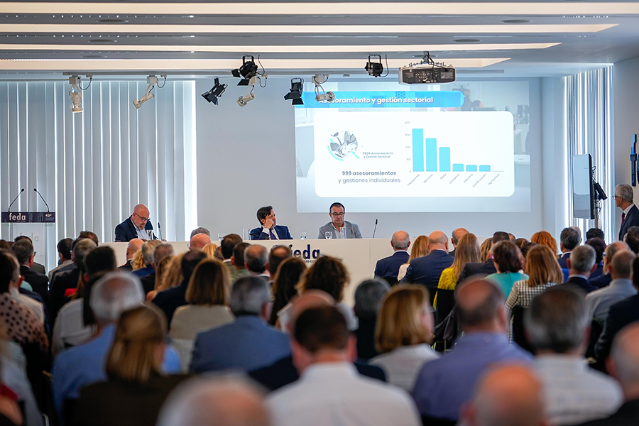 Debemos seguir integrando la actividad económica con la responsabilidad social; Relevo generacional, no solamente en las empresas, sino también en las juntas directivas, que es uno de los grandes retos al que nos enfrentamos y por ello hay que seguir convenciendo a los que tienen que dar el paso de la importancia de los logros conjuntos y colectivos, que es nuestra principal tarea; Unidad, fortaleciendo la marca FEDA, sosteniendo también la identidad propia de cada asociación pero siempre con un hilo conductor común, ya que no creemos en la dispersión ni en la división, sino en la fuerza de la unidad a través de FEDA como patronal.